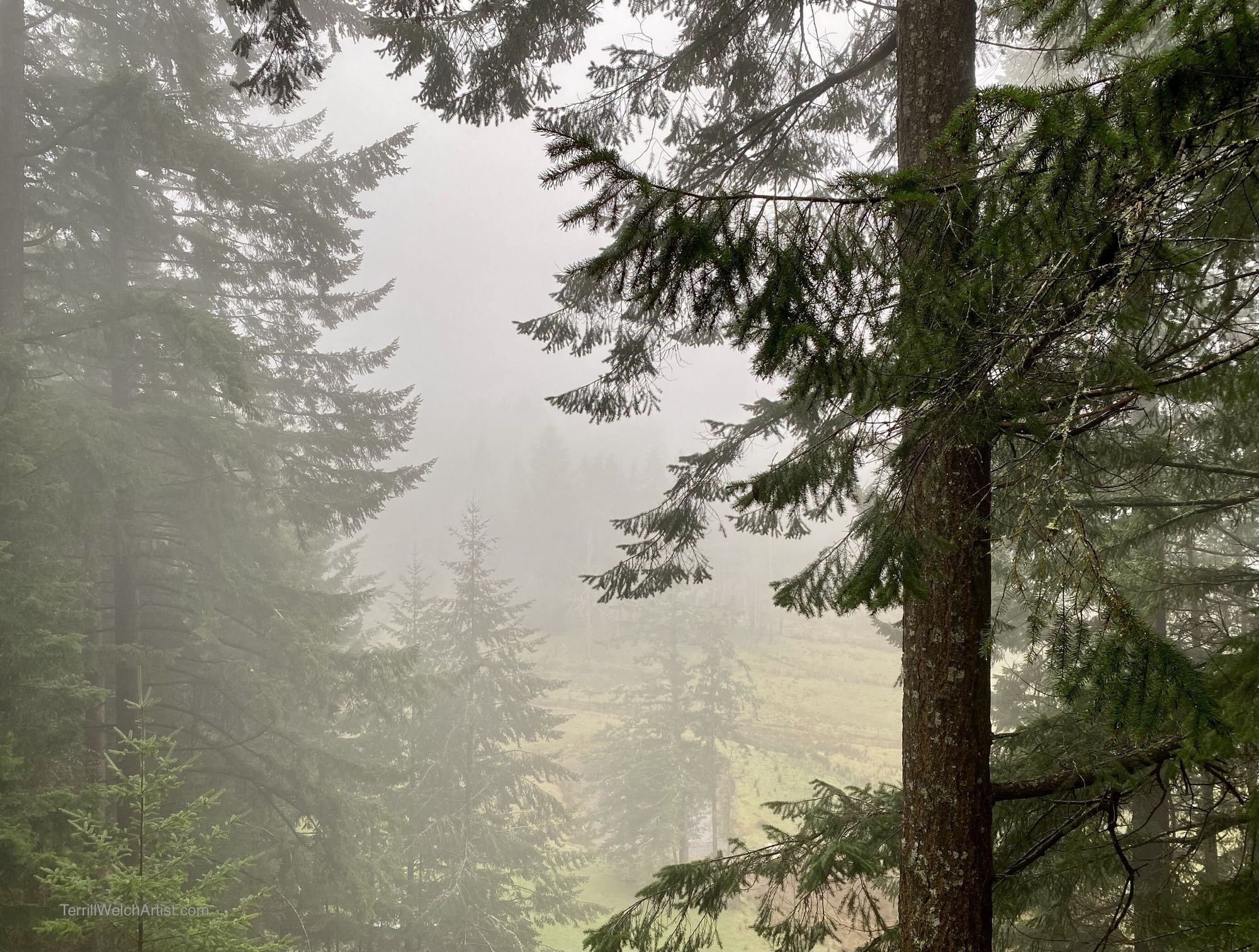 These images are from the trip home and it is even more grey this morning with heavier fog.… the kind of fog that has everything hushed and muffled over top of the damp wool of our sweaters as we stroll along a trail in the trees.