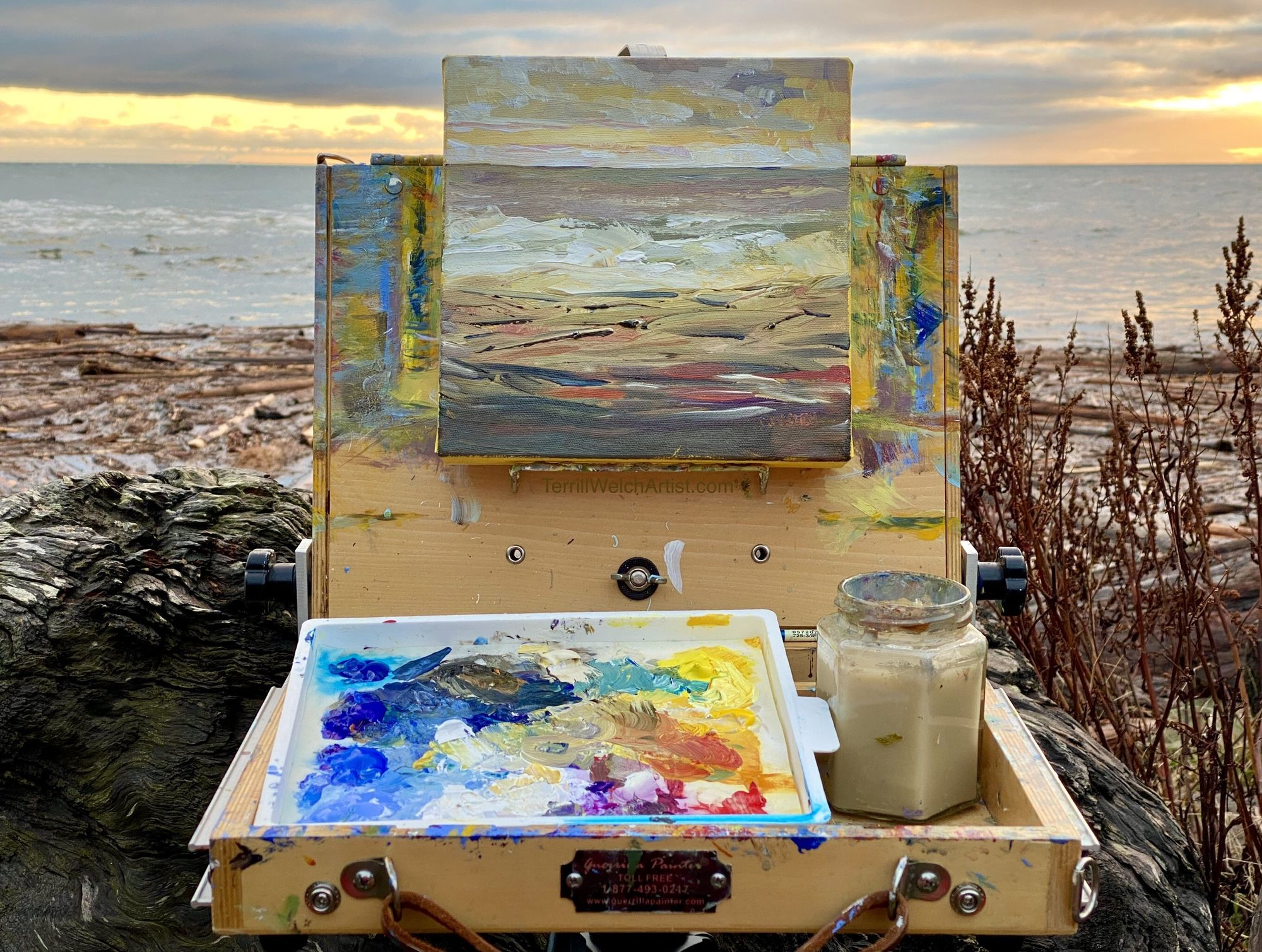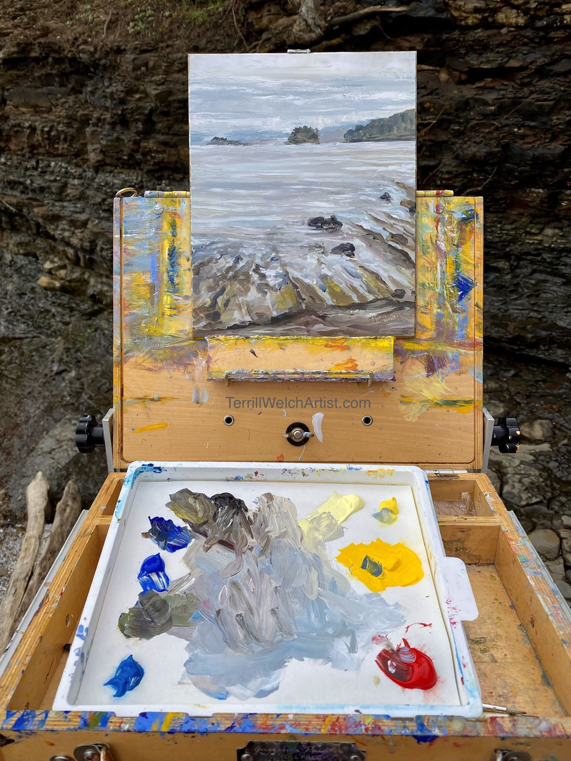 “Seaview Grey Study” by Terrill a Welch, 8 x 10 inch acrylic on gessobord plein air. Not yet released but inquires are a.ways welcome.