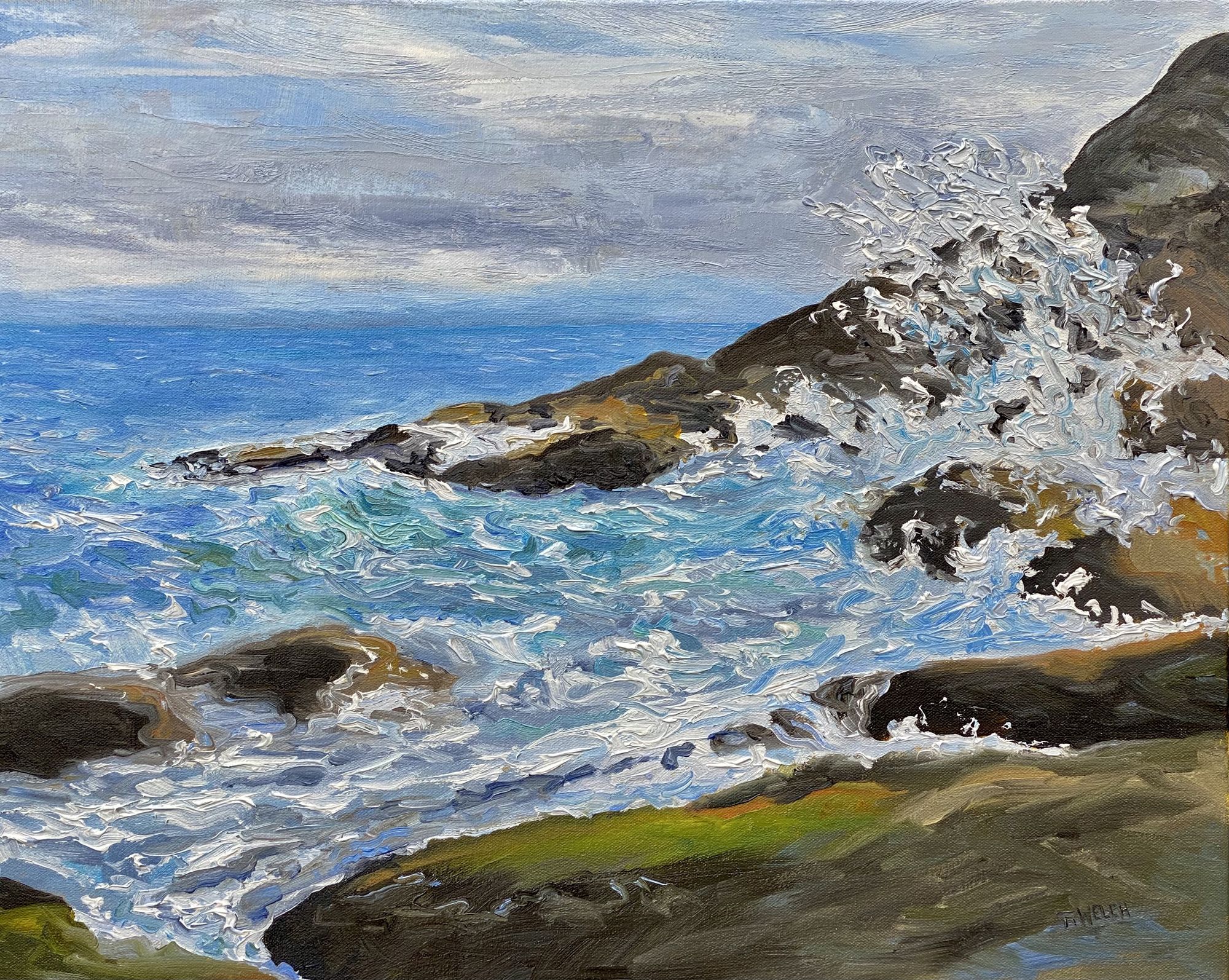 This 16 x 20 inch view oil paining by Jody Waldie is from the lighthouse and is called “Storm Watching”