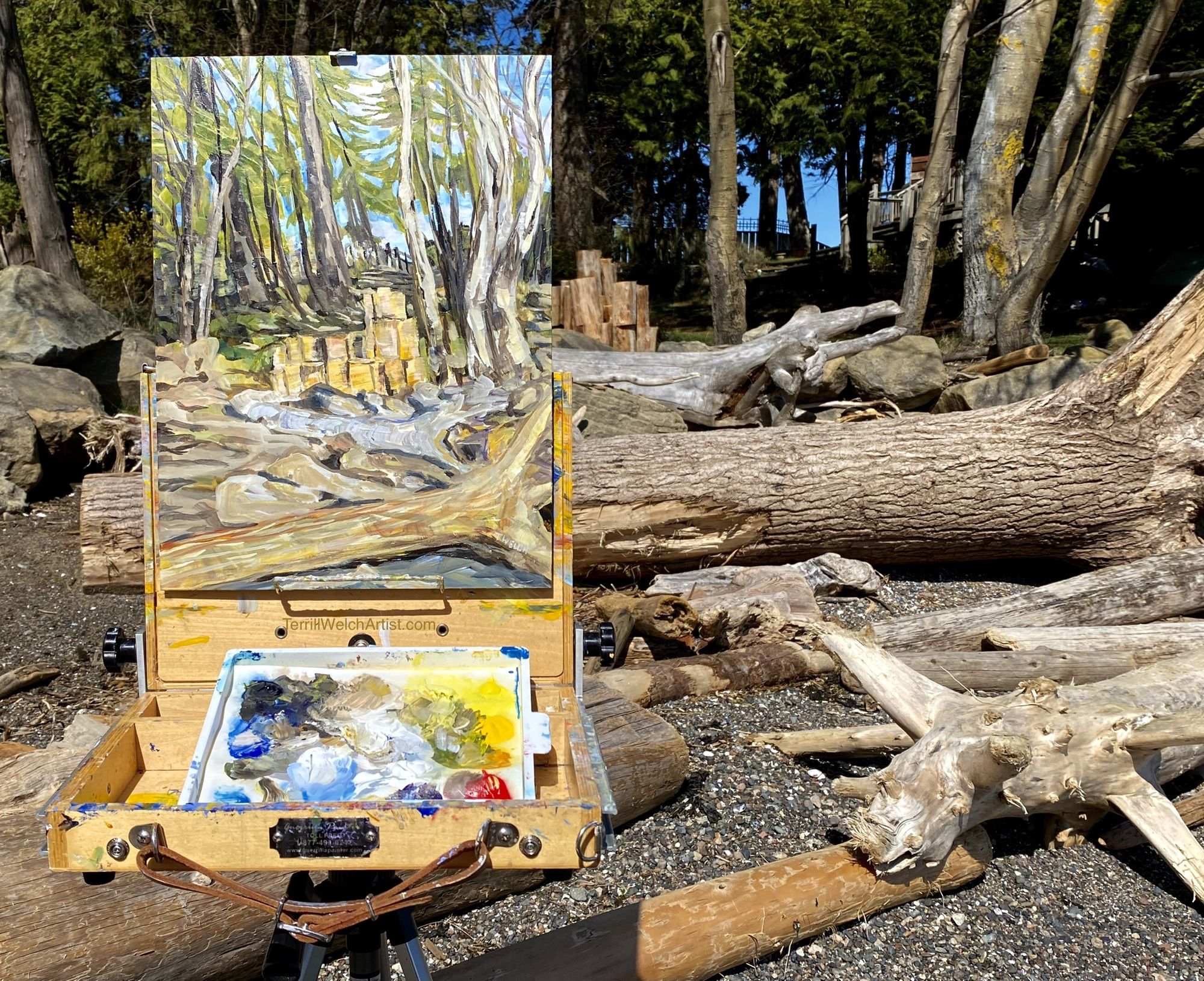 “Winter Firewood” by Terrill Welch 16 x 12 inch plein air acrylic on gessobord. Also, not released yet but inquires are welcome.
