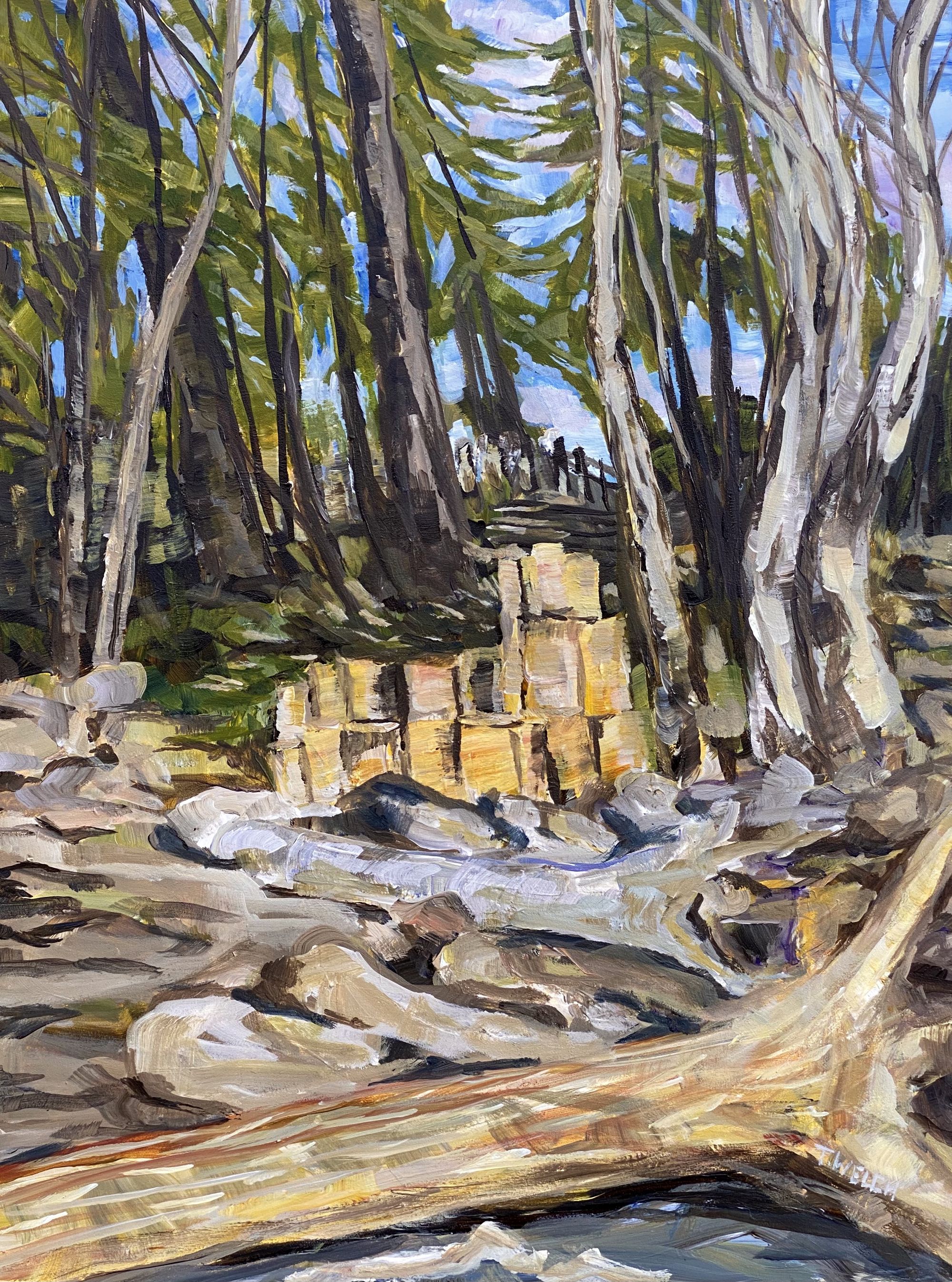 Stripping away the human illusion of our separation from nature is at the core of my work. I have a driving need to succeed in creating bridges with my art between humanity and nature, before it is too late. These works reflect my surrounding landscapes. The brushstrokes render the light, shadow, movement, smells, sounds and emotions I am experiencing in our natural world.