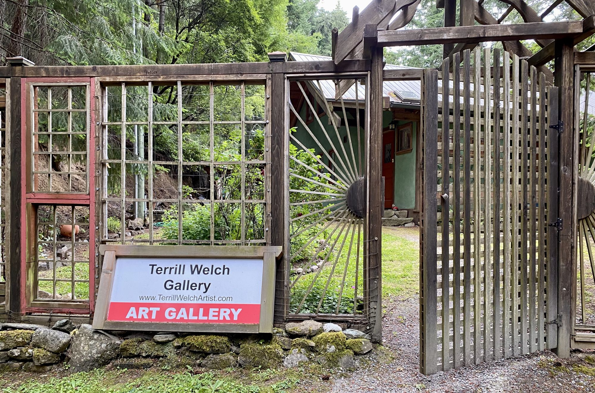 The sign for the gallery leans casually where the Gallery Pod will hopefully take its place in early August.