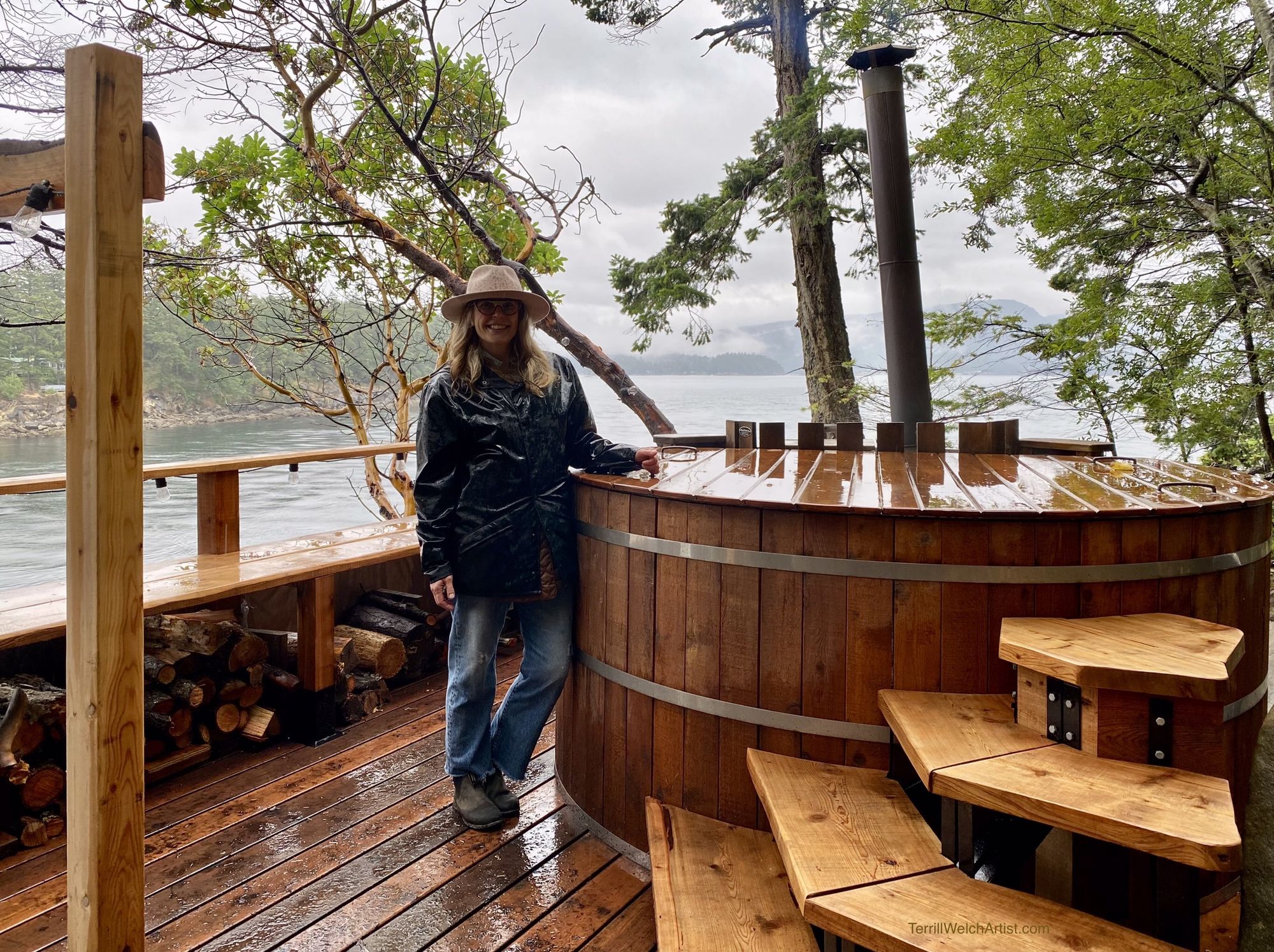 One of my favourite discoveries today was this fresh seawater, wood fire heated, hot tub that I hope the owners had a good soak to warm up that evening after a lovely but very wet west coast day.