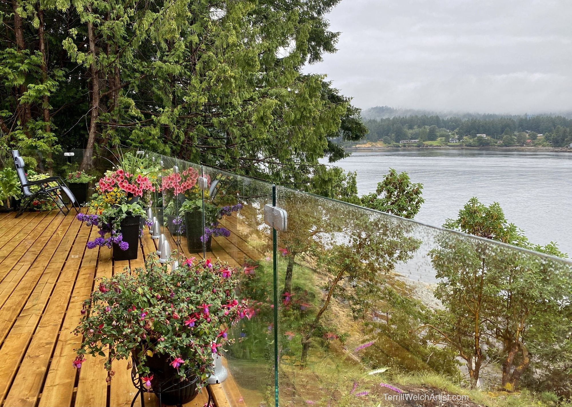 Forest fragrances drifted between muffled murmurings of island life that are only broken by morning birds and the neighbour walking his two dogs. I stop to visit for a few minutes and pet one of the dogs while we chat.