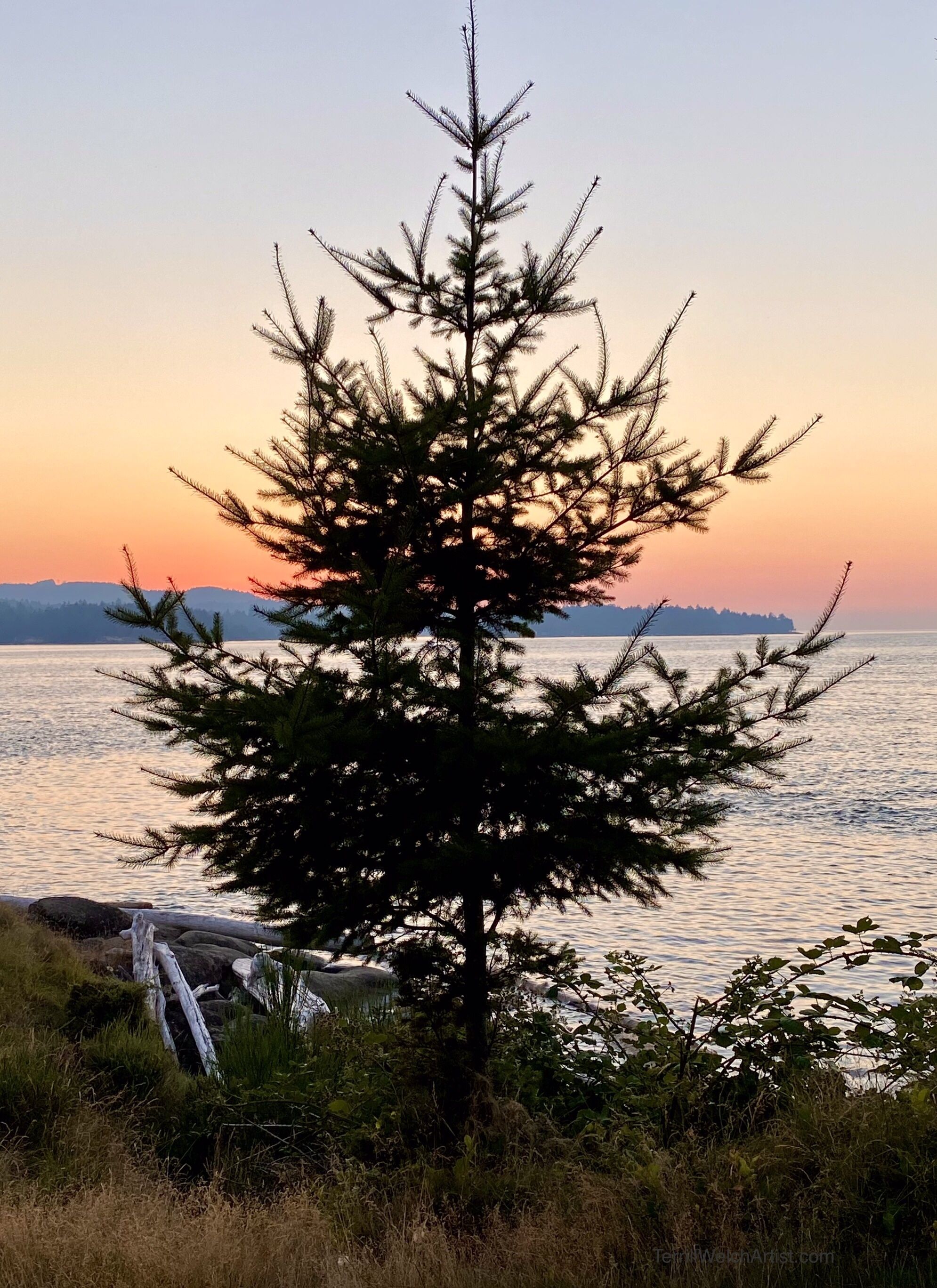 A fir tree stirs just a little with relief as the relenting sun finally leaves for another day.