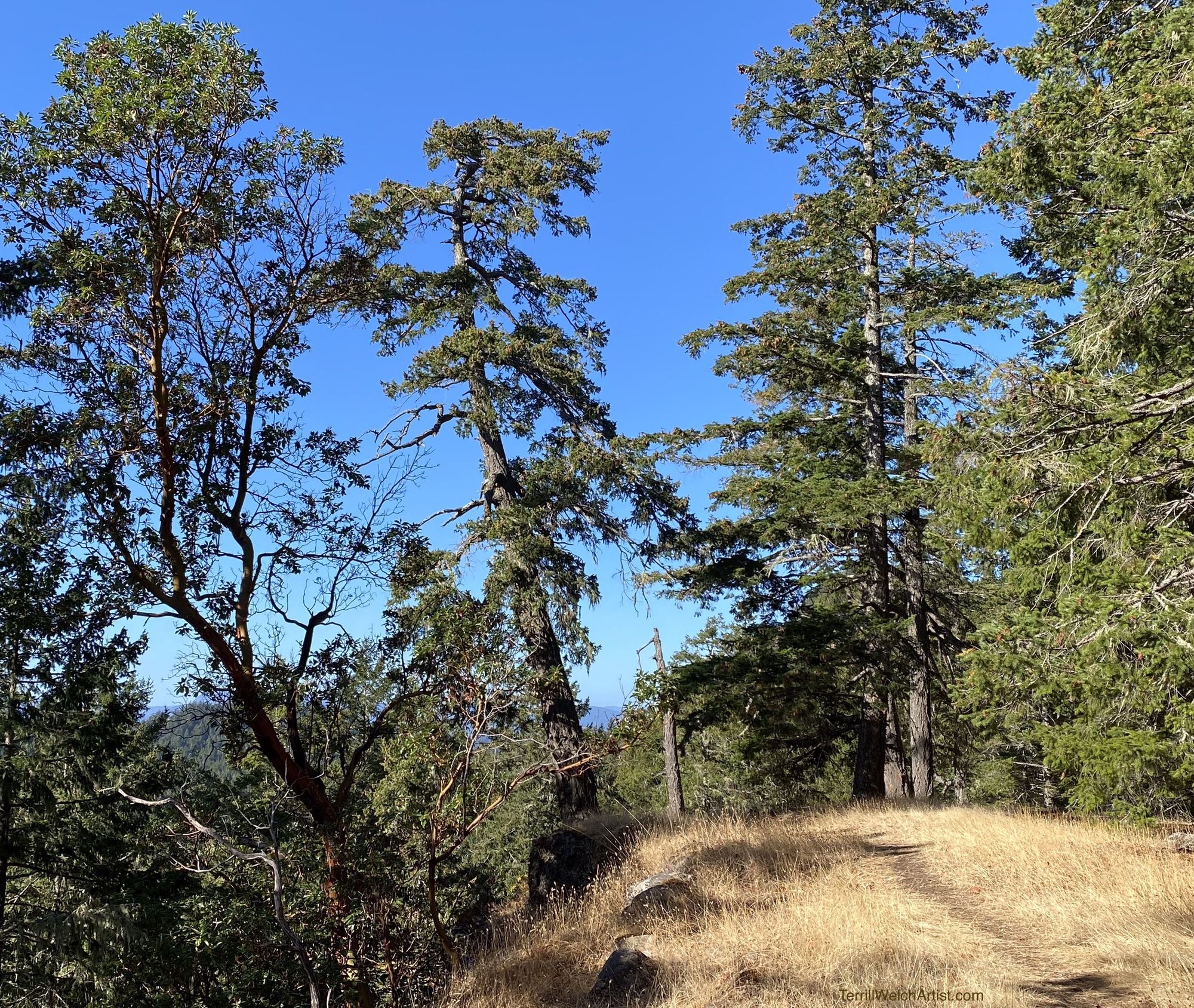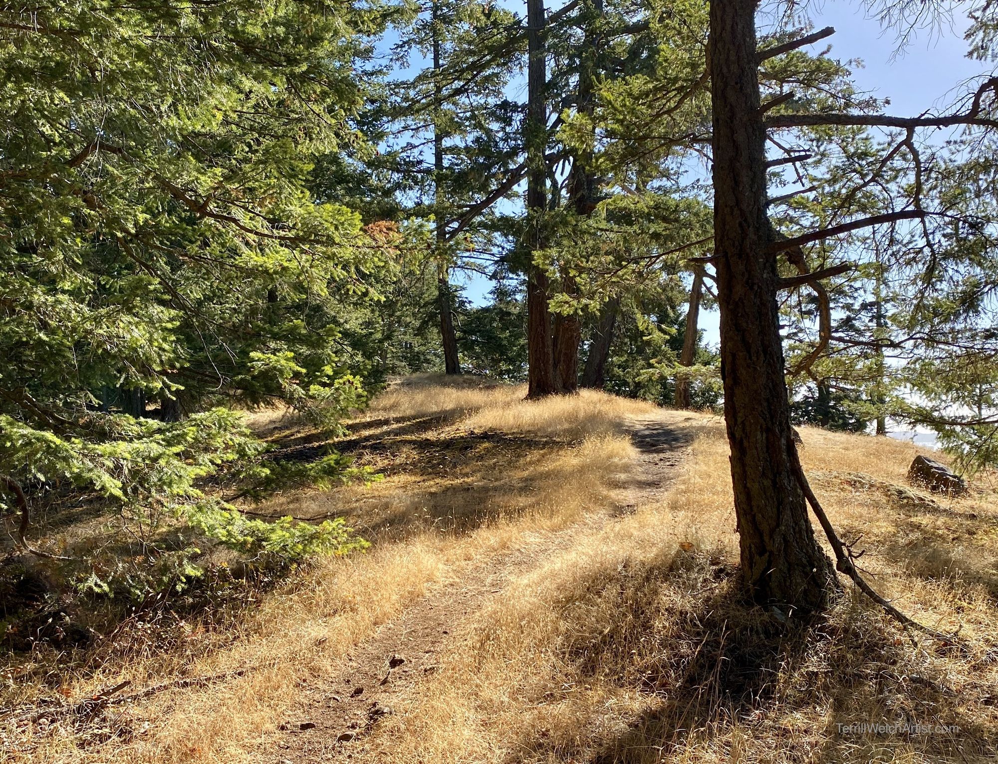 Then there is the searching out new adventures that link to a trail I use to hike during the first few years we were living on Mayne Island. It is a walk that begins on an old road that is now a park that begins right next to our home. No driving is necessary.