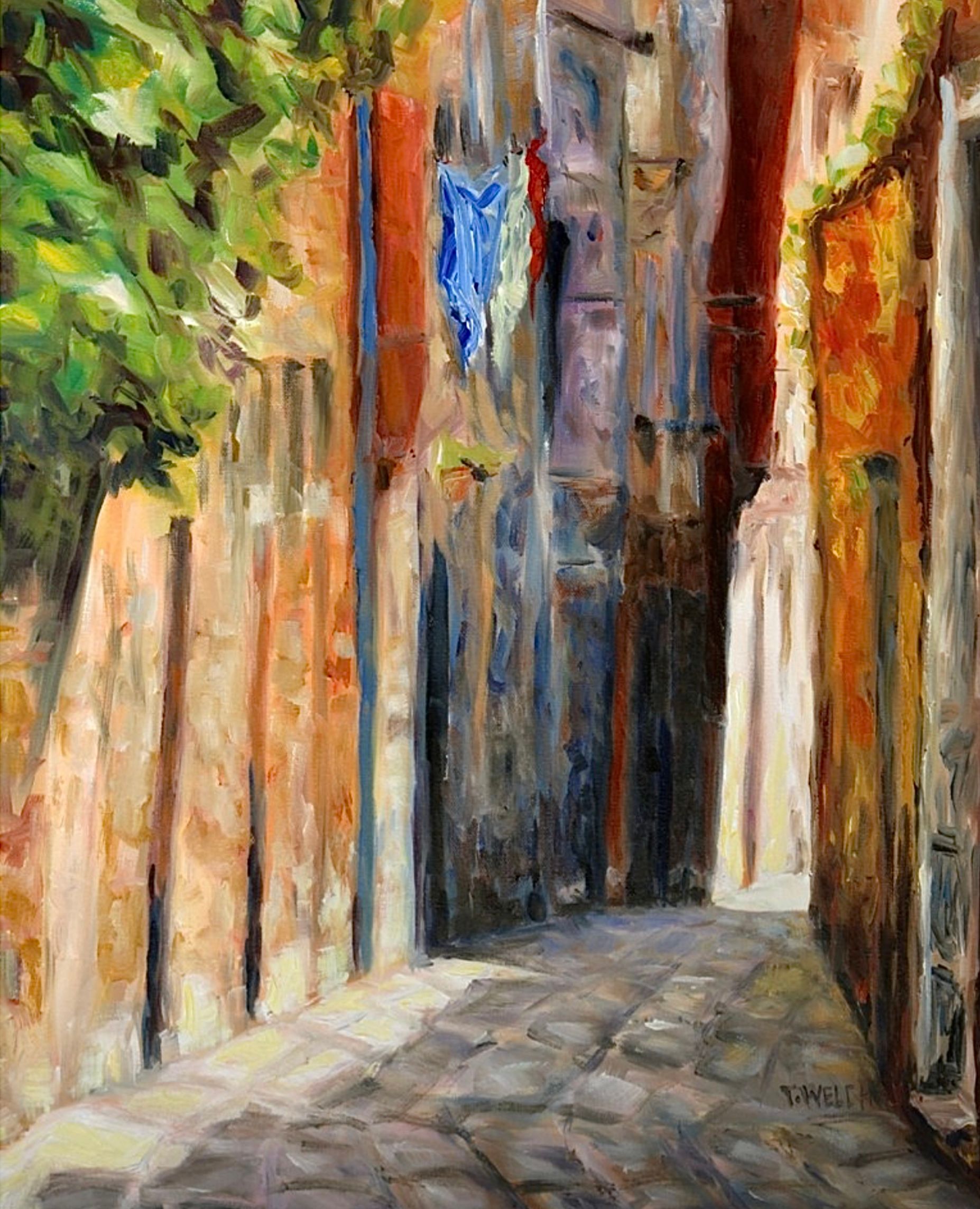 SOLD - Wabi Sabi Alley in Venice by Terrill Welch, 20 x 16 inch oil on canvas.