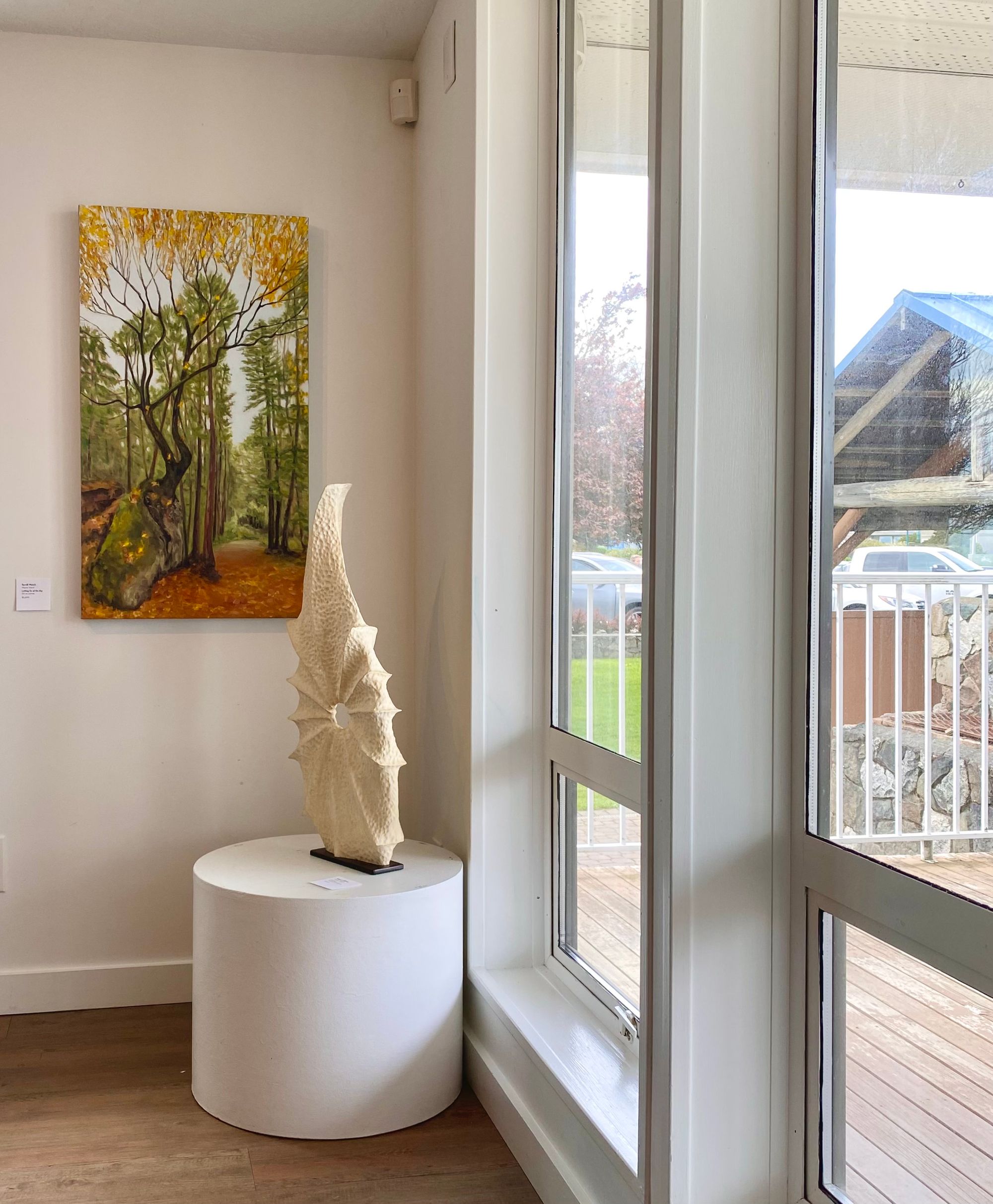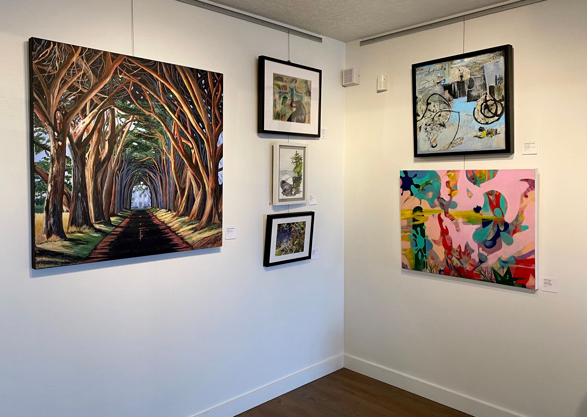 In this vibrant show the Japanese Memorial Garden sparkles with blossoms, boats rest in Mayne Island bays and old buildings nestle into the trees and along the shores while trees spiral and twist skyward with the paintings of Glenda King, Jennifer Peers, Maeva Lightheart, Jody Waldie and Terrill Welch.
