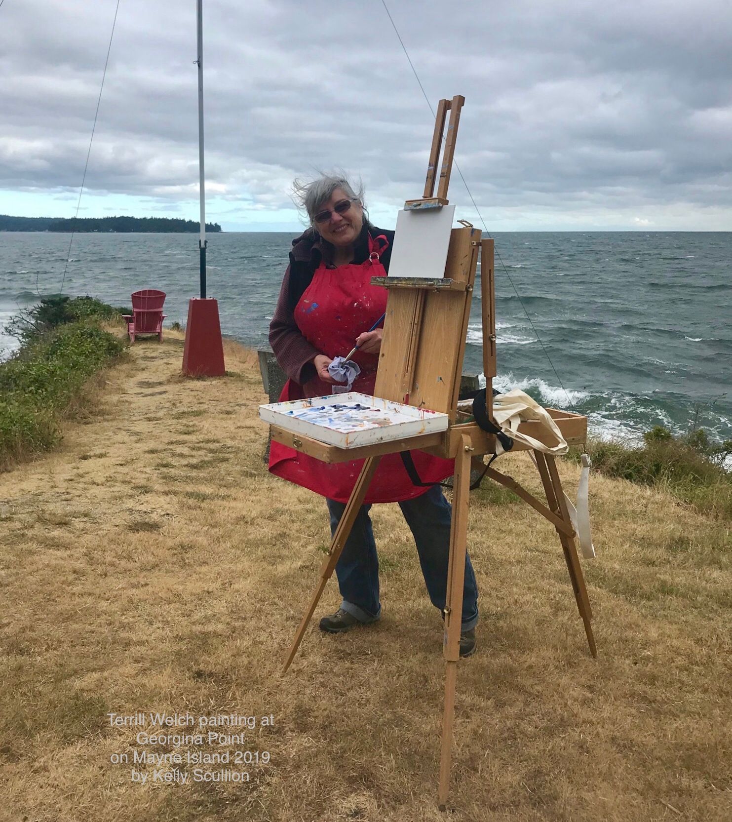 Two other painters joined me and though the wind and light were challenging, we had a great time. Kelly Scullion snaps a photo of me just as we are get started.