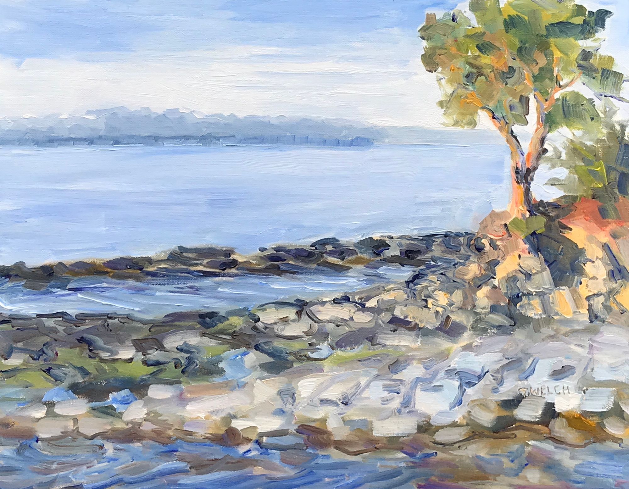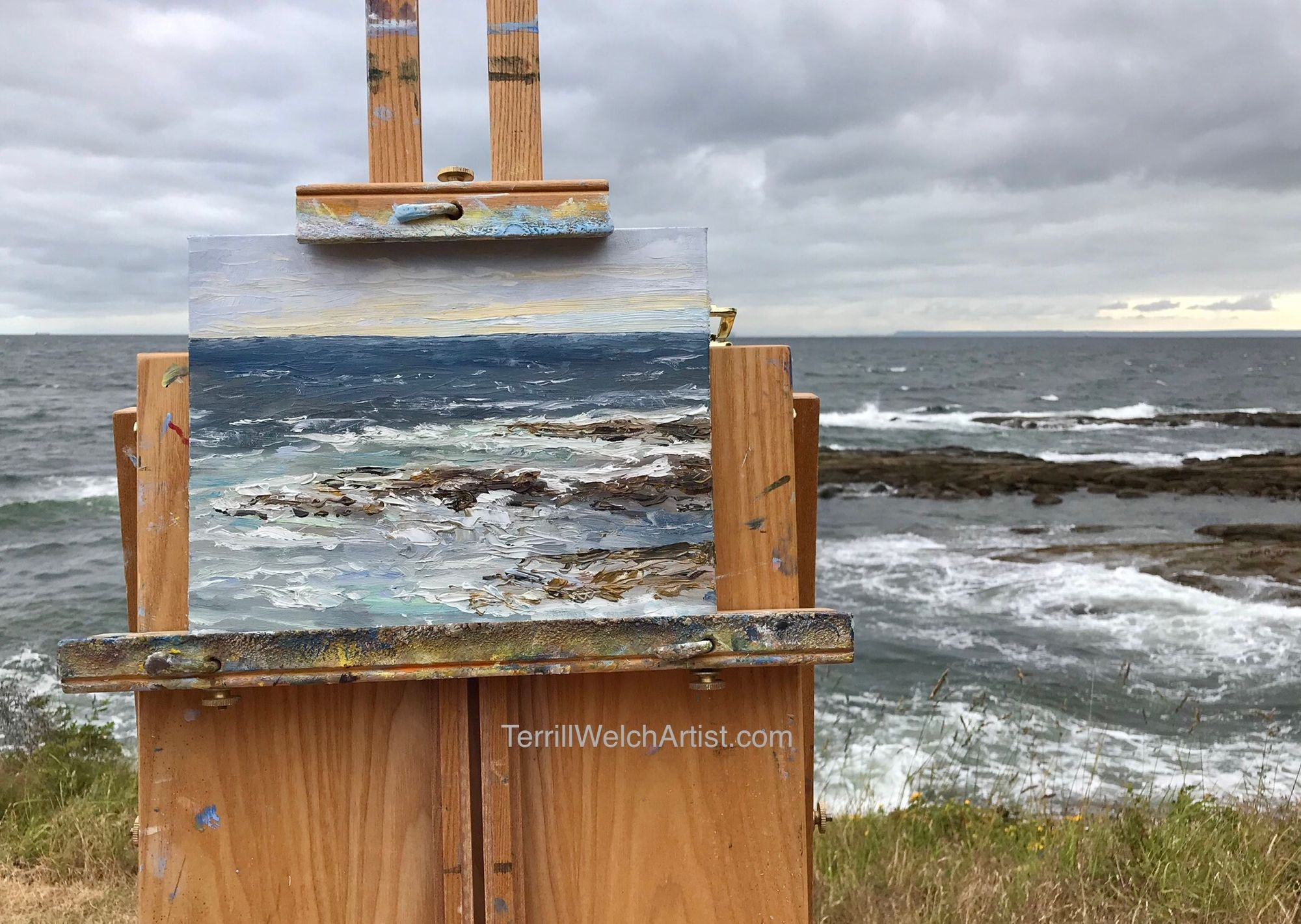 The wind and waves have started to calm as the tide goes out and the light starts to lose its magic. I take one last look at the painting before adding a signature.