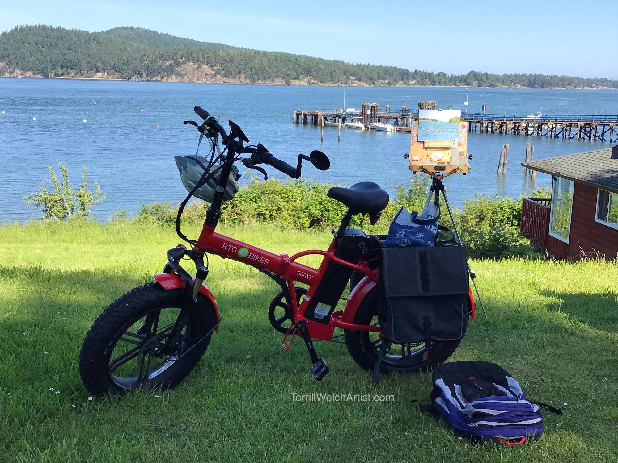 I road the e-bike the next day to work and then didn’t ride for two more weeks until my ribs healed enough that I thought they might be able to handle another tumble... should such a thing happen. I have yet to load the panniers up again and take it plein air painting. Soon though. ;)
