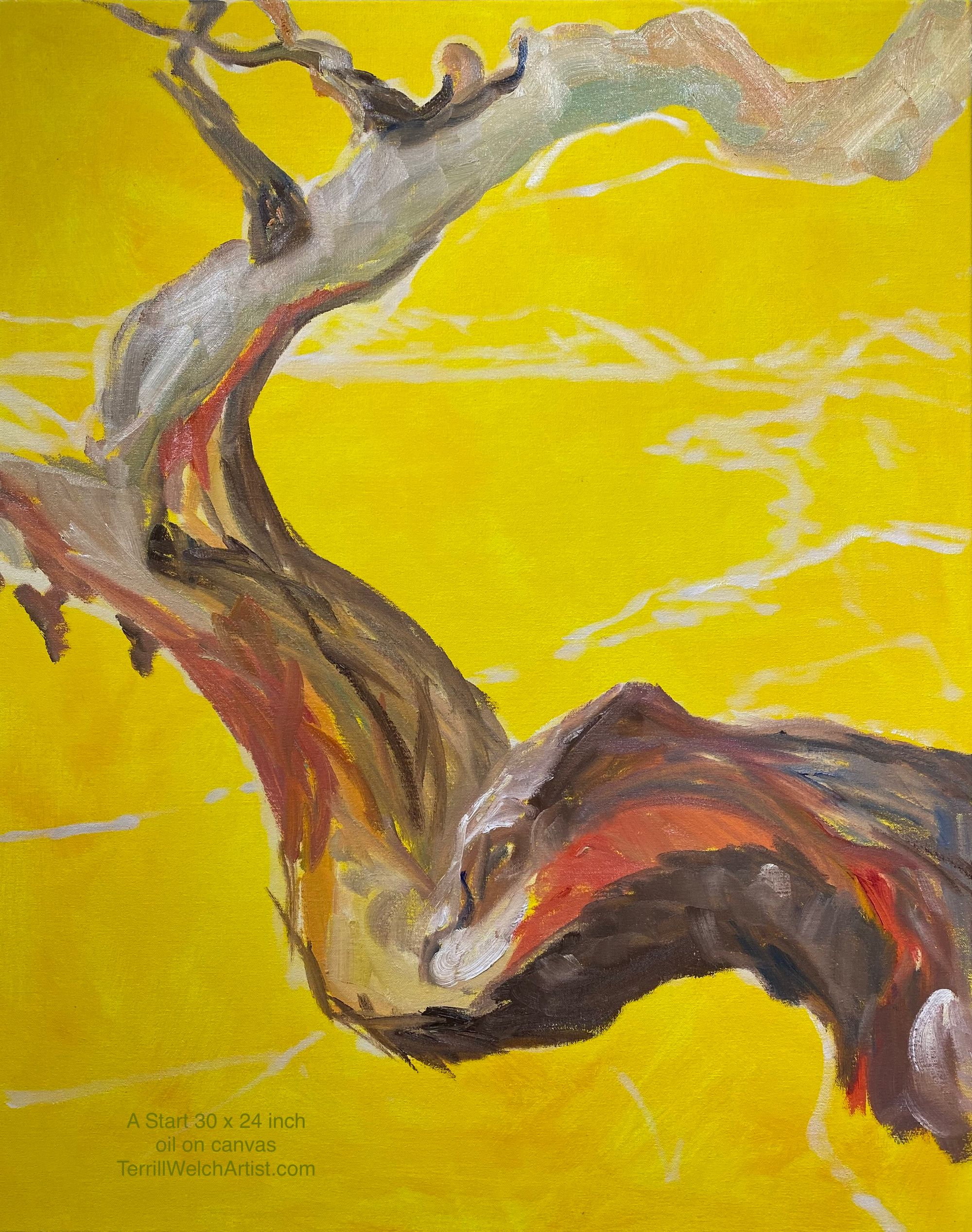 I thought you might enjoy this work-in-progress of the latest painting “Arbutus Entertaining a Grey Day” 30 x 24 inch walnut oil on canvas.