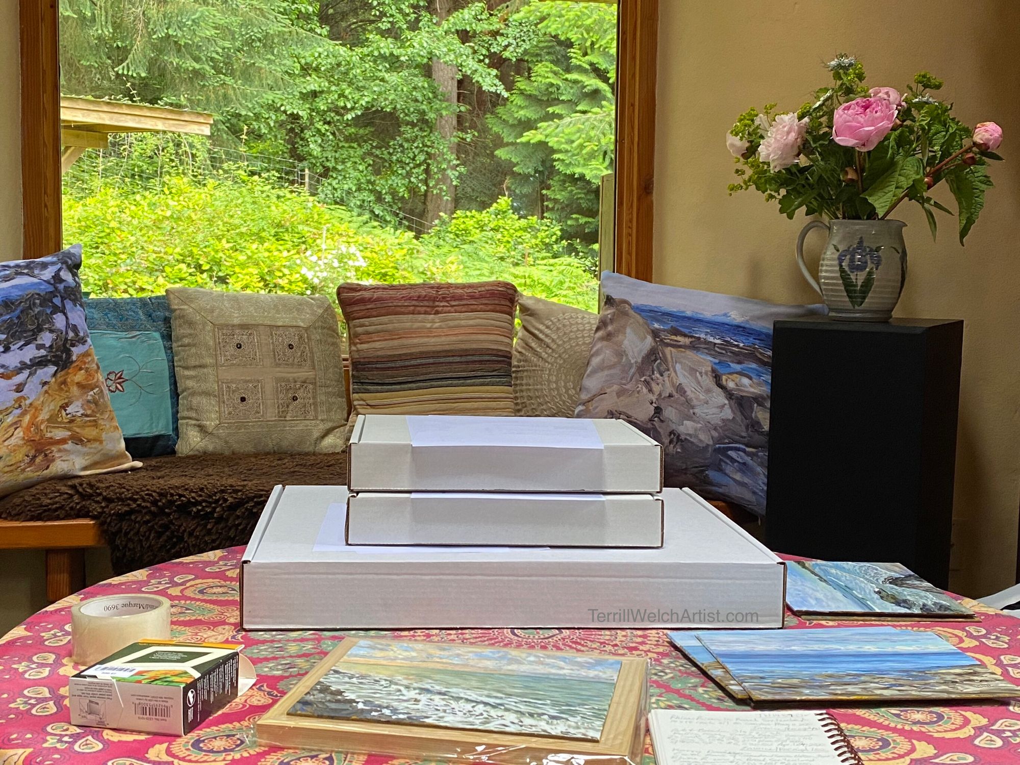 I love the natural rhythms of days that are organized by the season and the weather. Monday was a long and full-on-big-sweeps kind of day starting with getting six paintings in three different parcels sent off to art collectors.