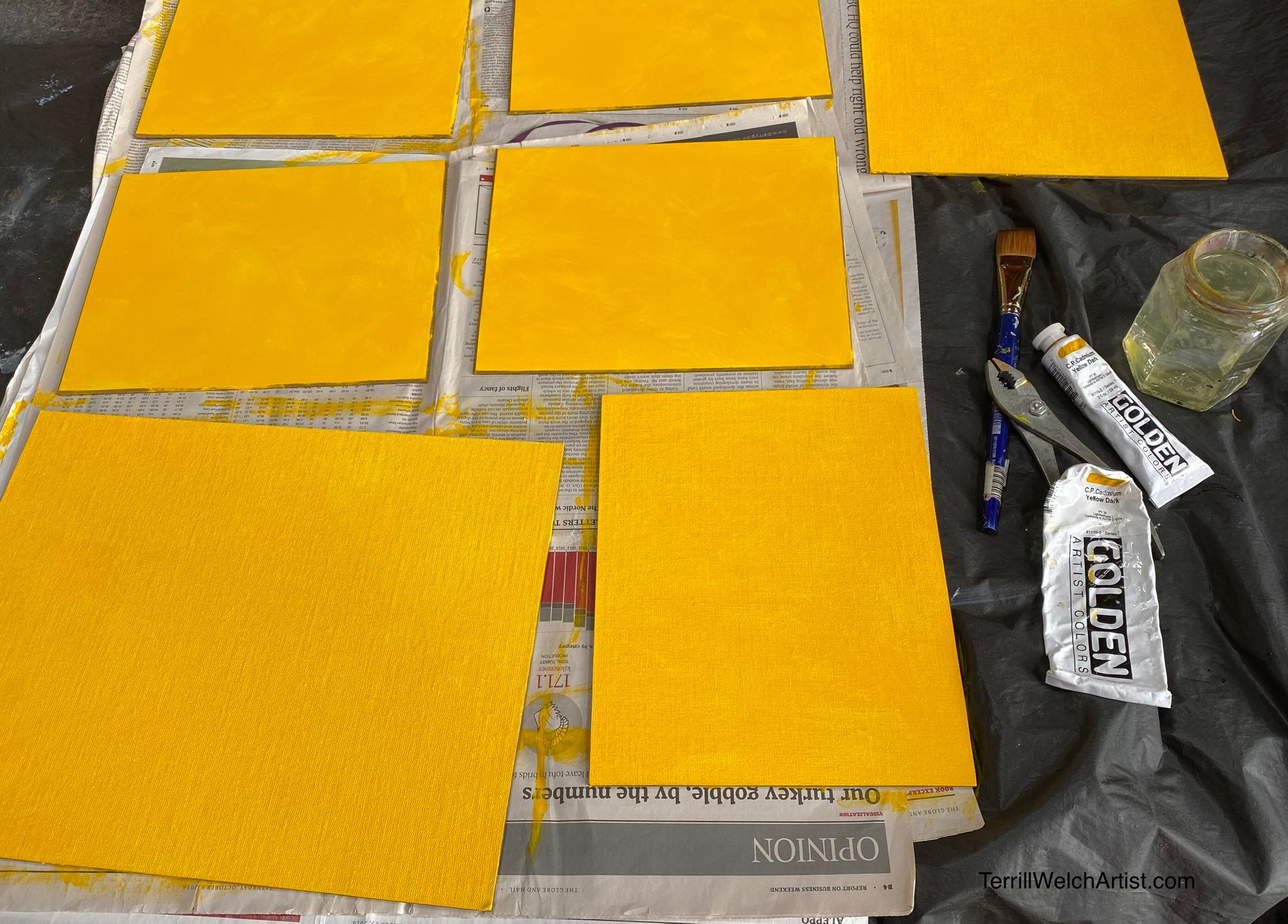 This was followed by getting grounds on seven painting sketch boards for plein air and study work.