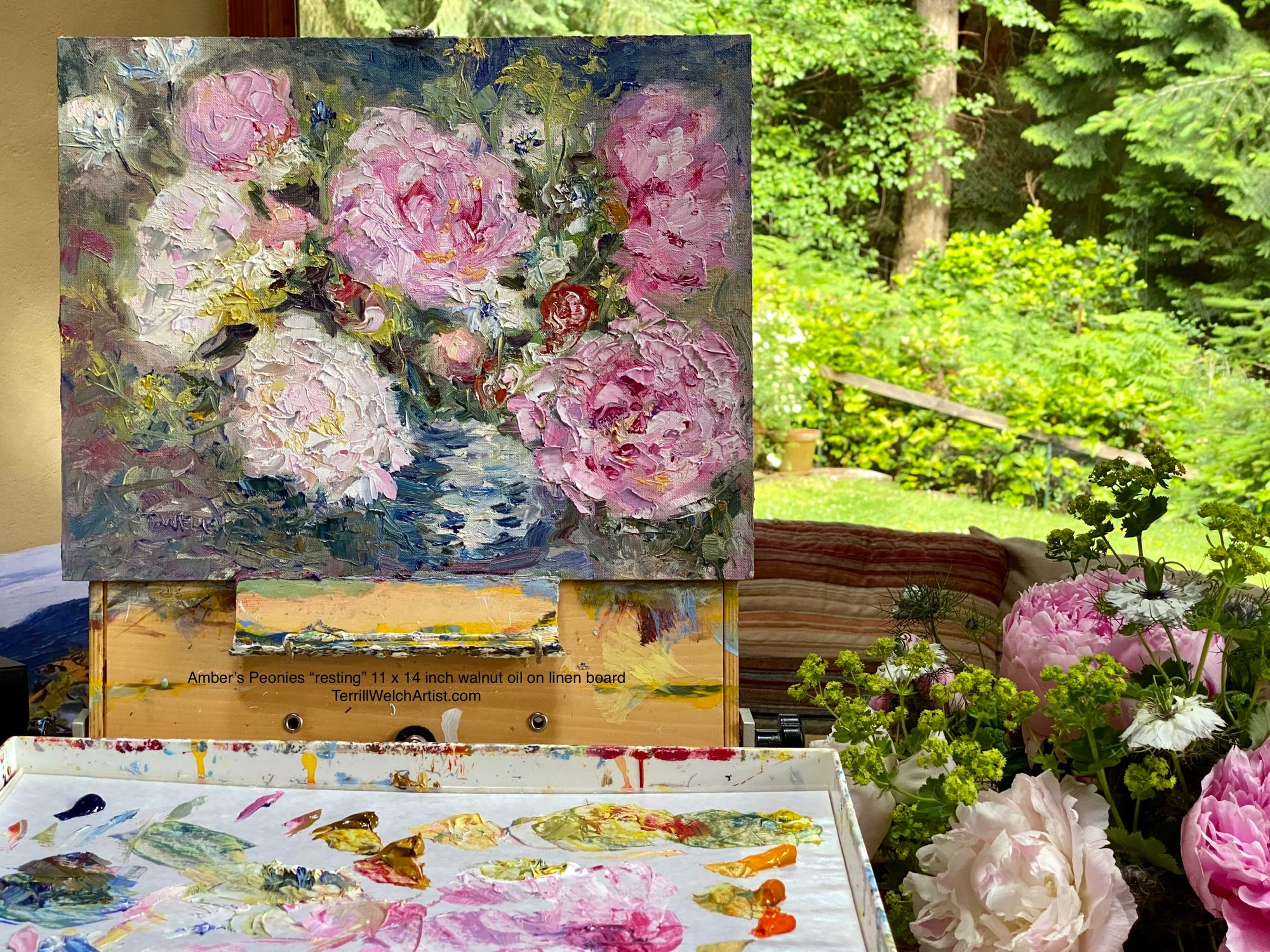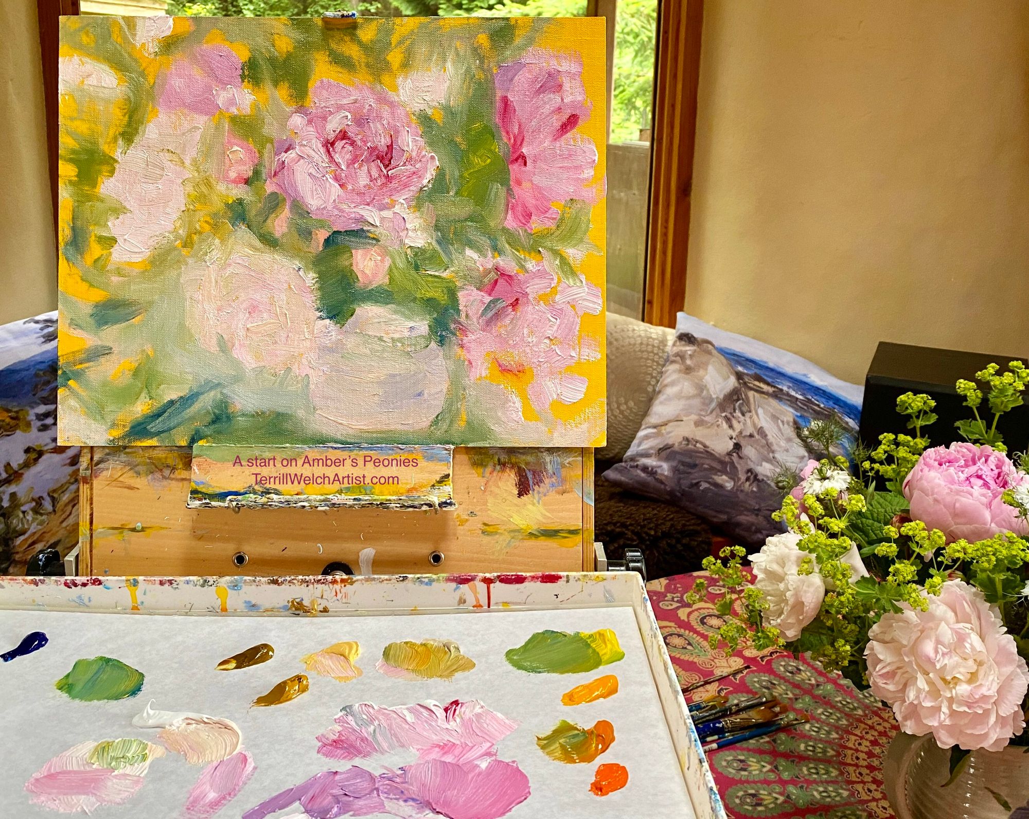I am including “Amber’s Peonies” below to provide an immediate opportunity to take me up on this offer. You see, I don’t notice just these peonies. I see Amber’s soft smile and strong gaze as her eyes hold mine with confidence and clarity. She is due to have a second child this summer and her husband and young daughter are there by her side helping out in the market stand. She is getting them ready to take on a bigger role as this young family provides essential fresh food needs for island residents... and yes, beauty in the flowers that she has arranged between the long hours of growing, harvesting, bundling and packing produce. I believe their work is one of the many ways forward into a better future. The very least I can do is take a few hours standing at the easel with my brushes to capture their beauty and her efforts to offer sustenance, hope and community.