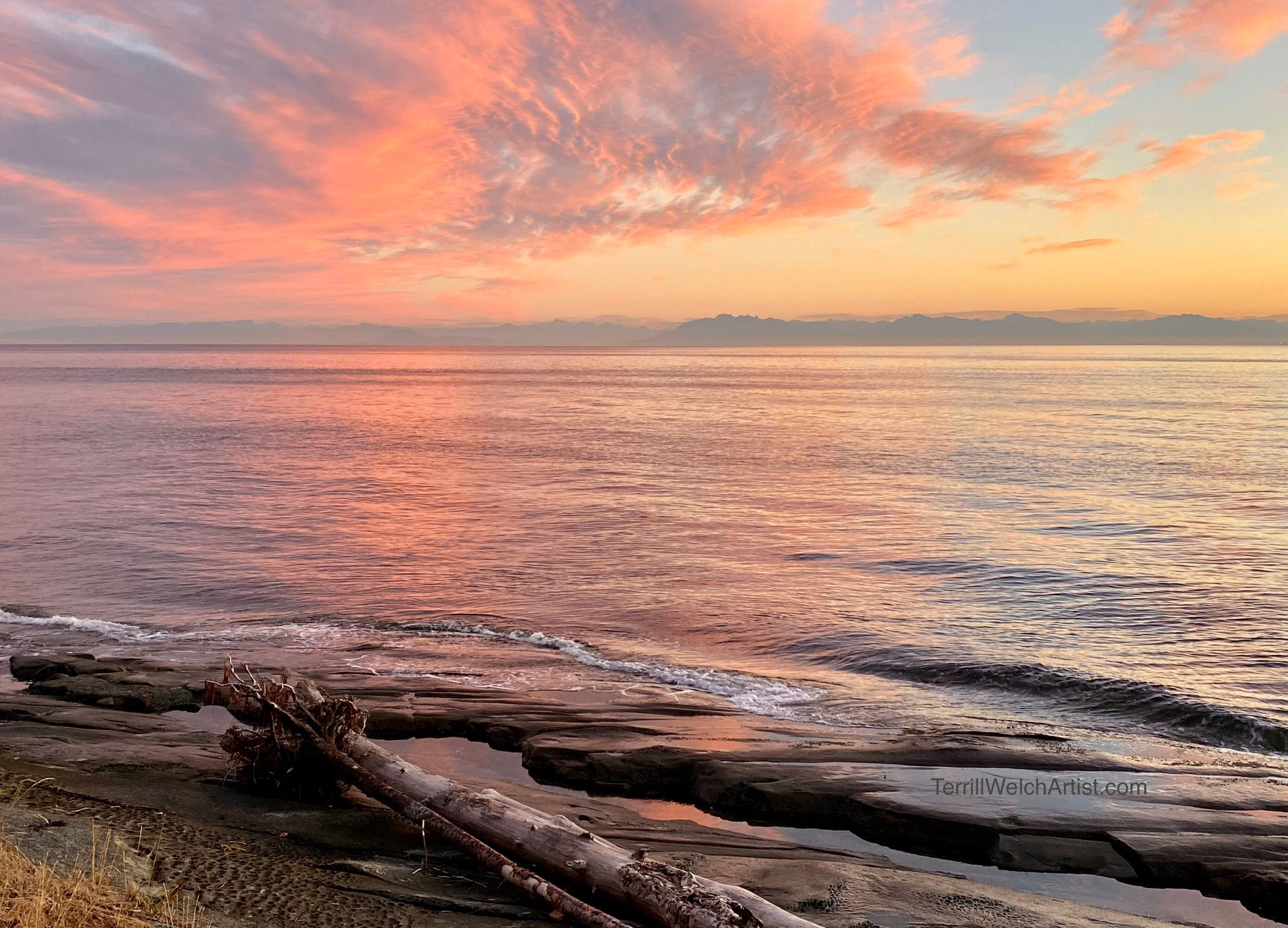 We had thought we would watch the sunrise and then paint. Painting not the sunrise but rather the early morning light. But we didn’t. The sunrise was so satisfying that we packed up afterwards and went to our separate homes for breakfast. This final image was taken about 6:10 am PST. 😉