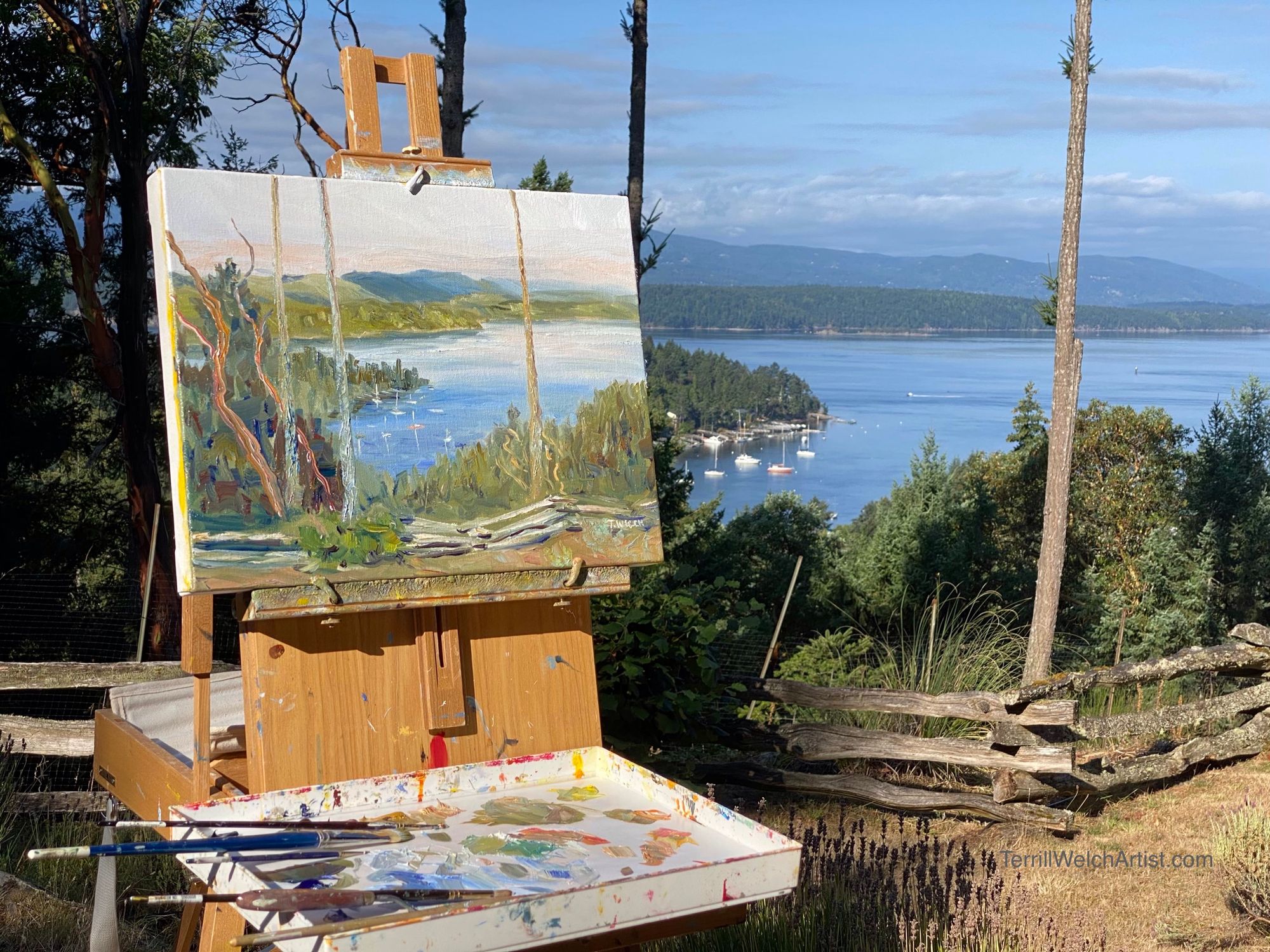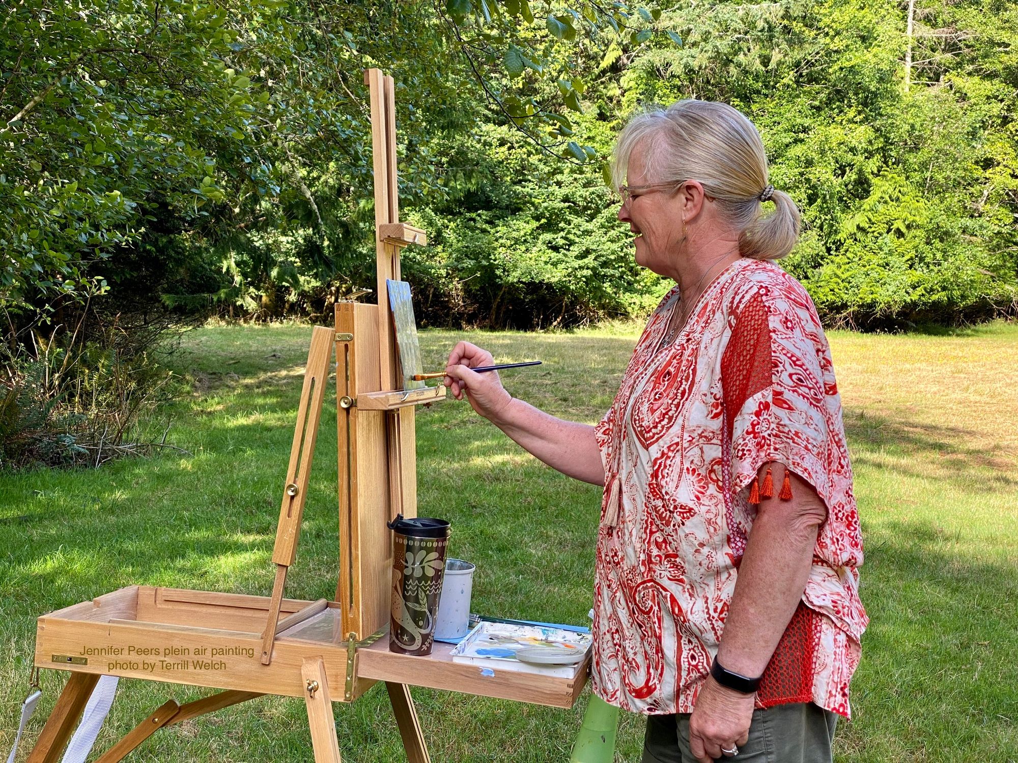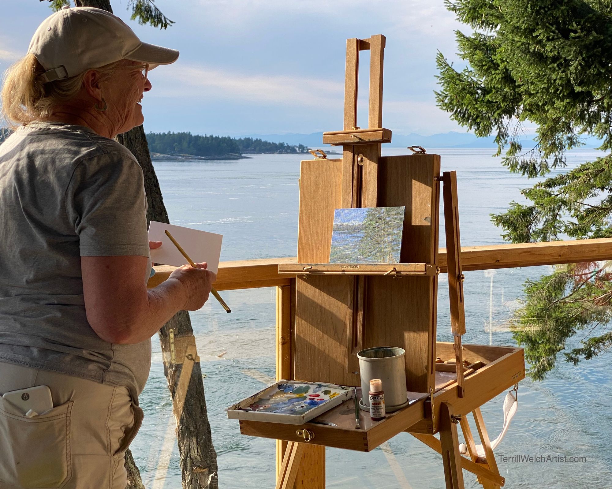 Jennifer - One of our reasons for moving to Mayne Island was to refocus, “live small to have a big life”! I have begun taking time for me between chores. It means “heading to my studio to paint” and as my days open up, it has allowed me to dedicate more time to painting. My work has become more fluid and decisions are quicker. This dedicated time has been amazing and constantly sharing “selfies” through family group chats of plein air or in my studio has resulted in some great encouragement from my family for my work!!!