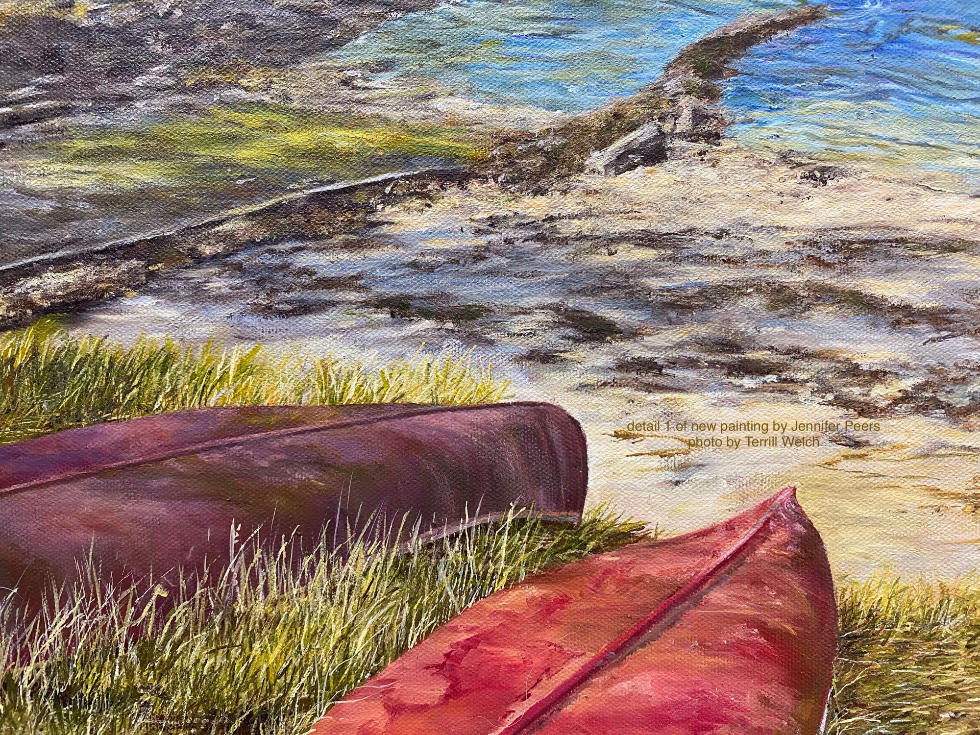 When I met Jennifer Peer’s, her warm bubbly nature was my first impression. After several years of watching her work, and being the subject of more than one candid photograph, I have also come to appreciate her ability to slip into a space as if she has always been there. Jennifer seldom startles me because she speaks softly when approaching. Then she can move around unnoticed, observing or working or usually both. In this manner, her keen sense for details are satisfied and her canvases are the fortunate recipients of those observations. What is behind those eyes that quietly notice? Let’s find out!