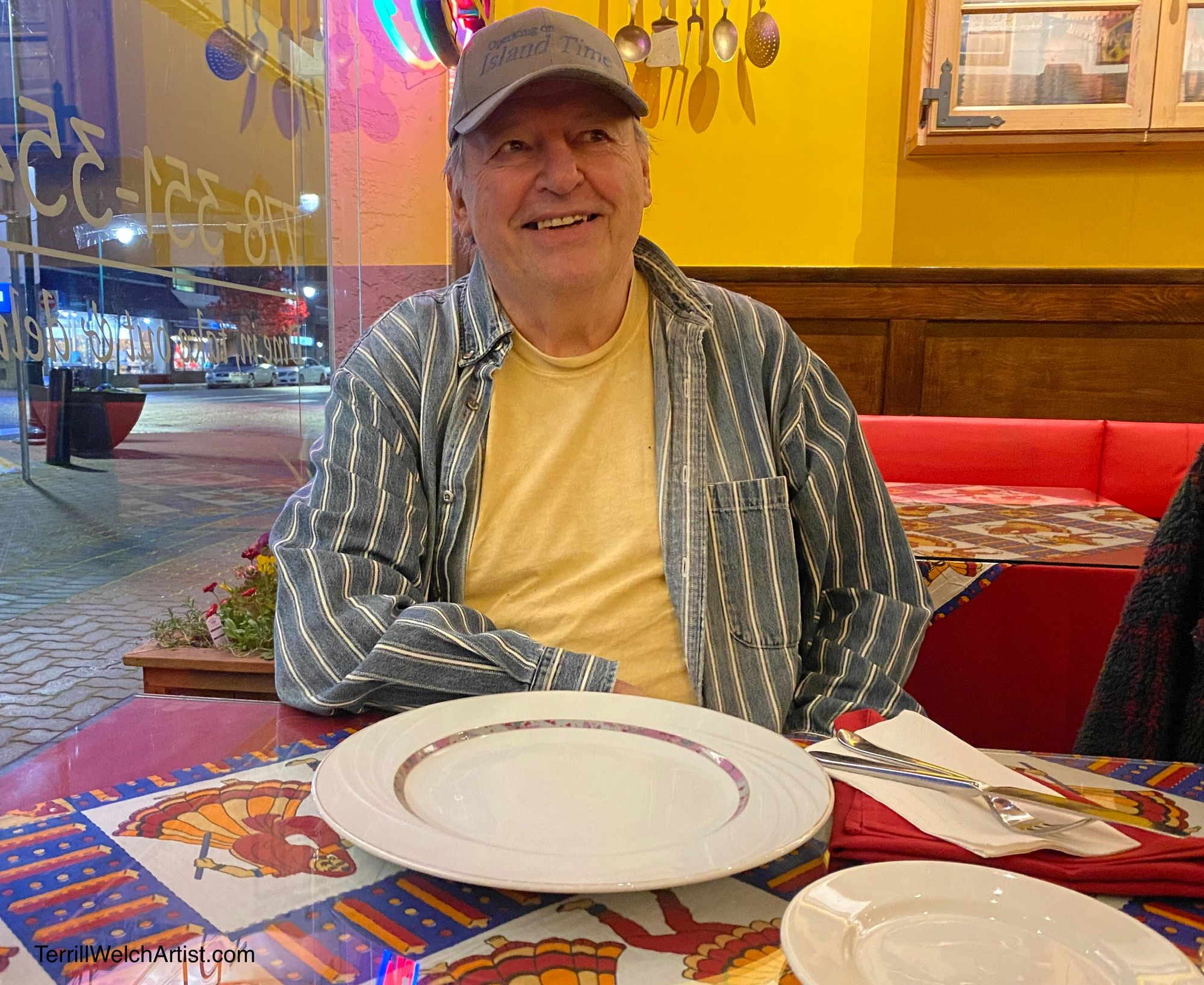 And here is the man of my hour near the end of a long day trip for tests as we find a safe place to dine with good protocols for an amazing Indian dinner at Royal Aroma in Sidney, British Columbia.