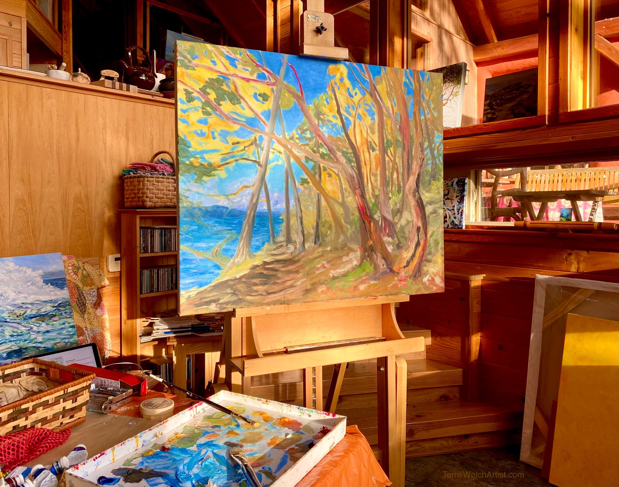 This issue will share the best work for 2020 chosen from my own painting inventory. I have a larger commissioned painting under way, interview questions sent to a new artist, Bill Hibberd, whose work will be showing in the next two artist online exclusive show. The Arbutus Room artists have a couple of outstanding large canvas works near completion, along with other gems that all need final photographs, hanging wires and edges painted. But these are simmering pots and not quite ready to serve yet. We are just going to have to wait. So, grab your beverage of choice and settle in to enjoy what is ready for sampling today...