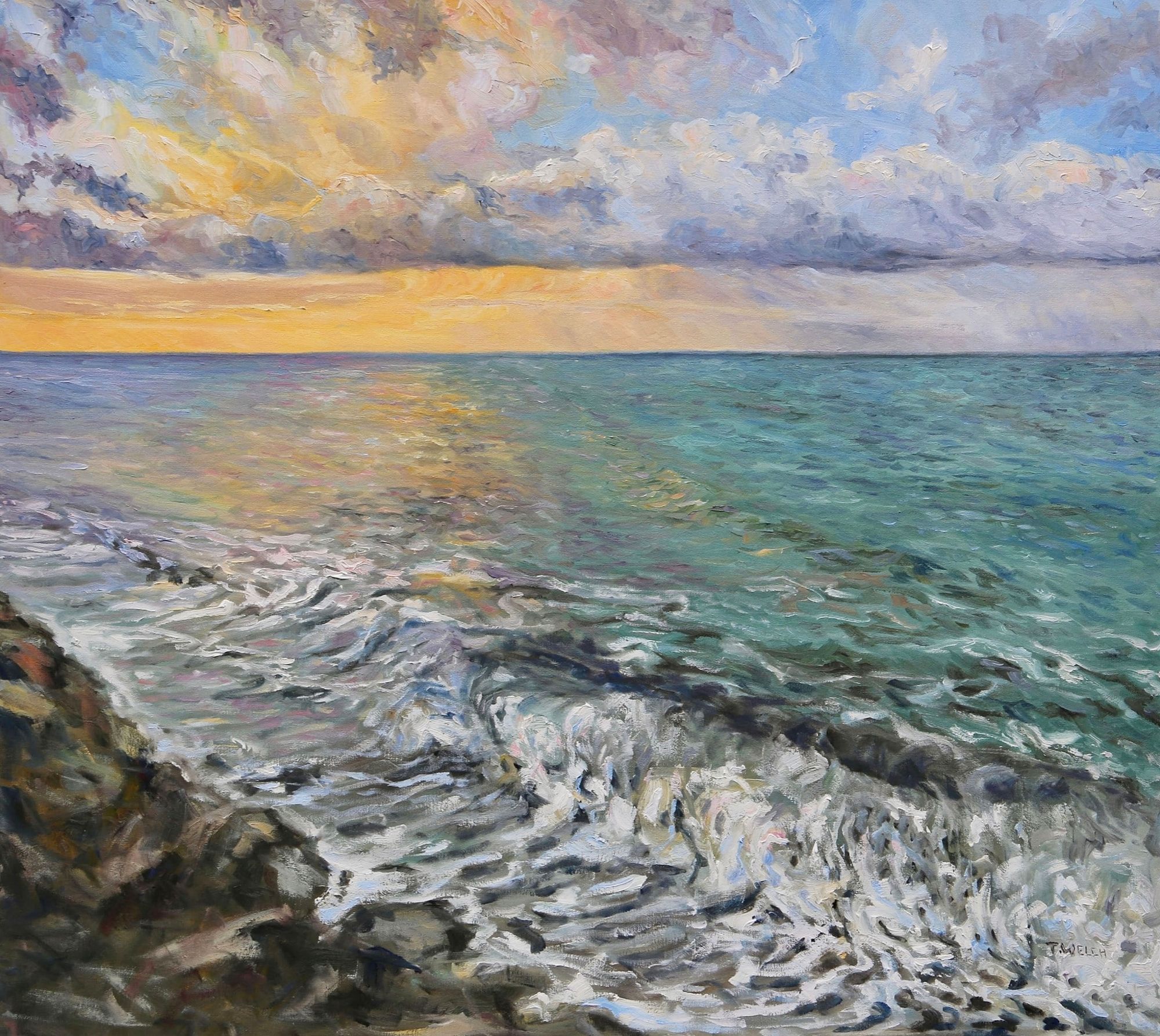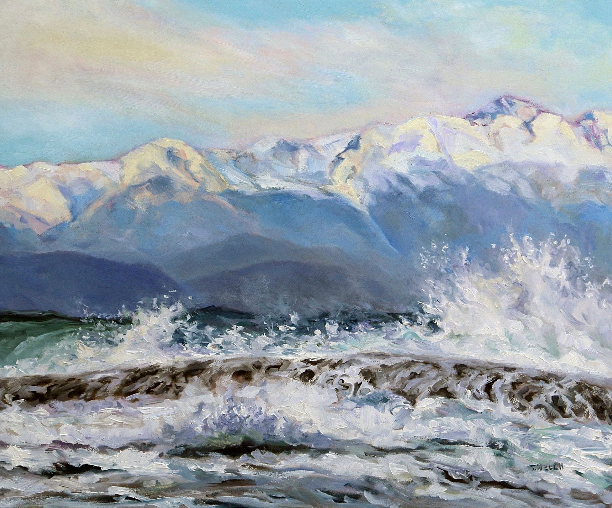 In 5th place and the tenth painting chosen only by the artist. Rough Seas and Sunshine by Terrill Welch, oil on canvas, 20 x 24 inches - In Private Collection. Commission.