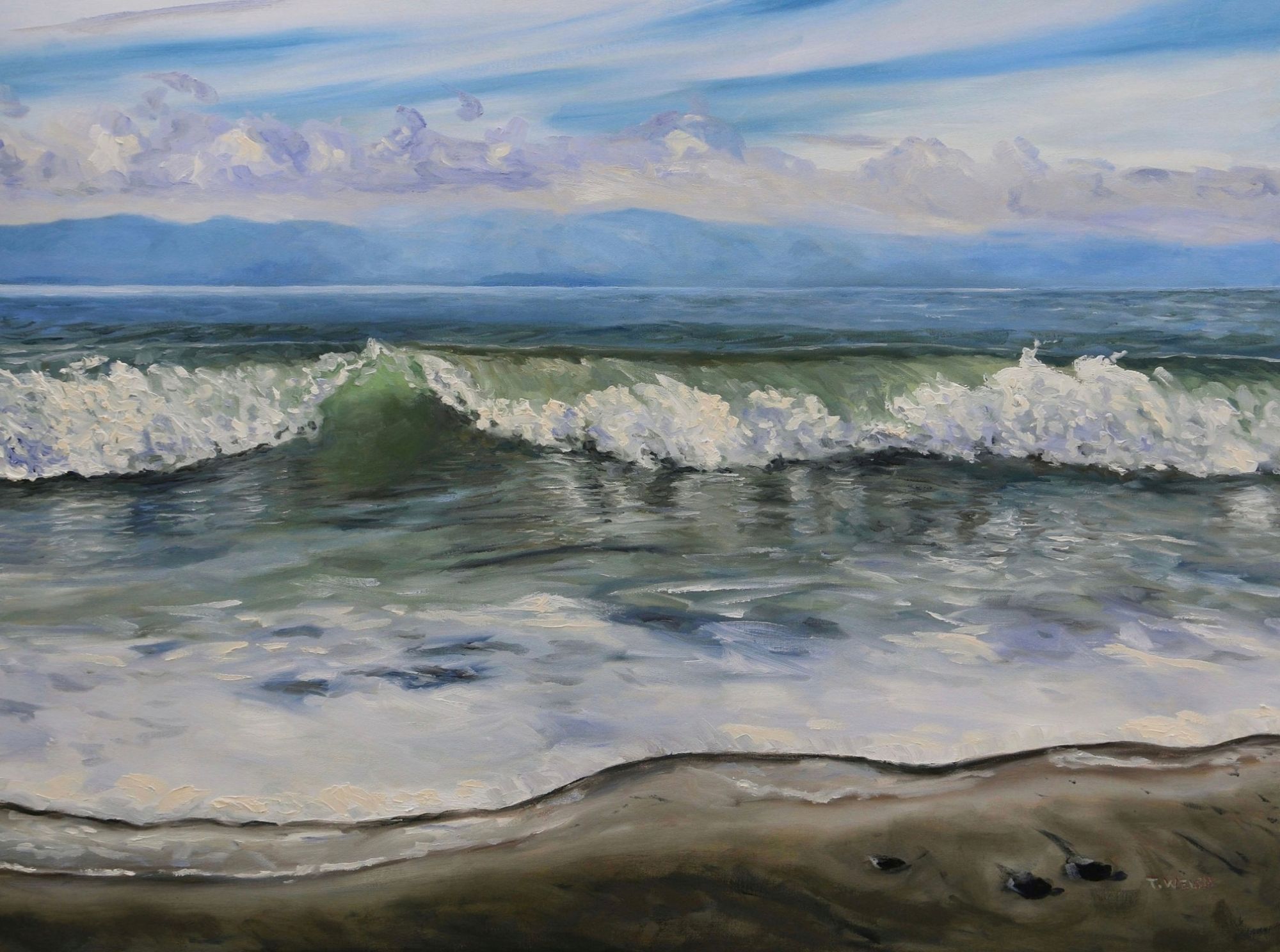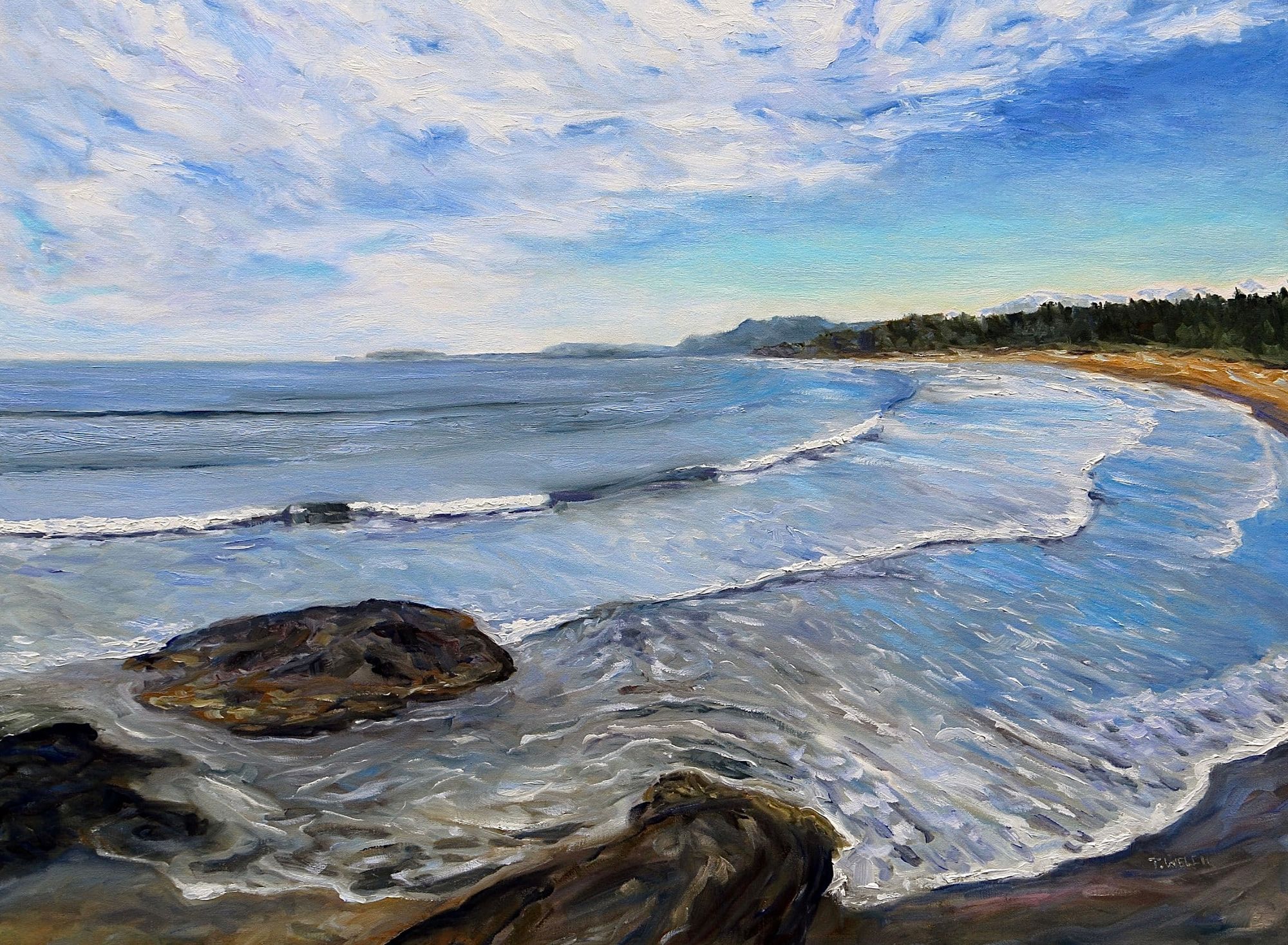 In 4th place and the ninth painting which is chose from several in fourth place by the artist. Wickininnish Beach in the Pacific Rim Park Reserve - Available.