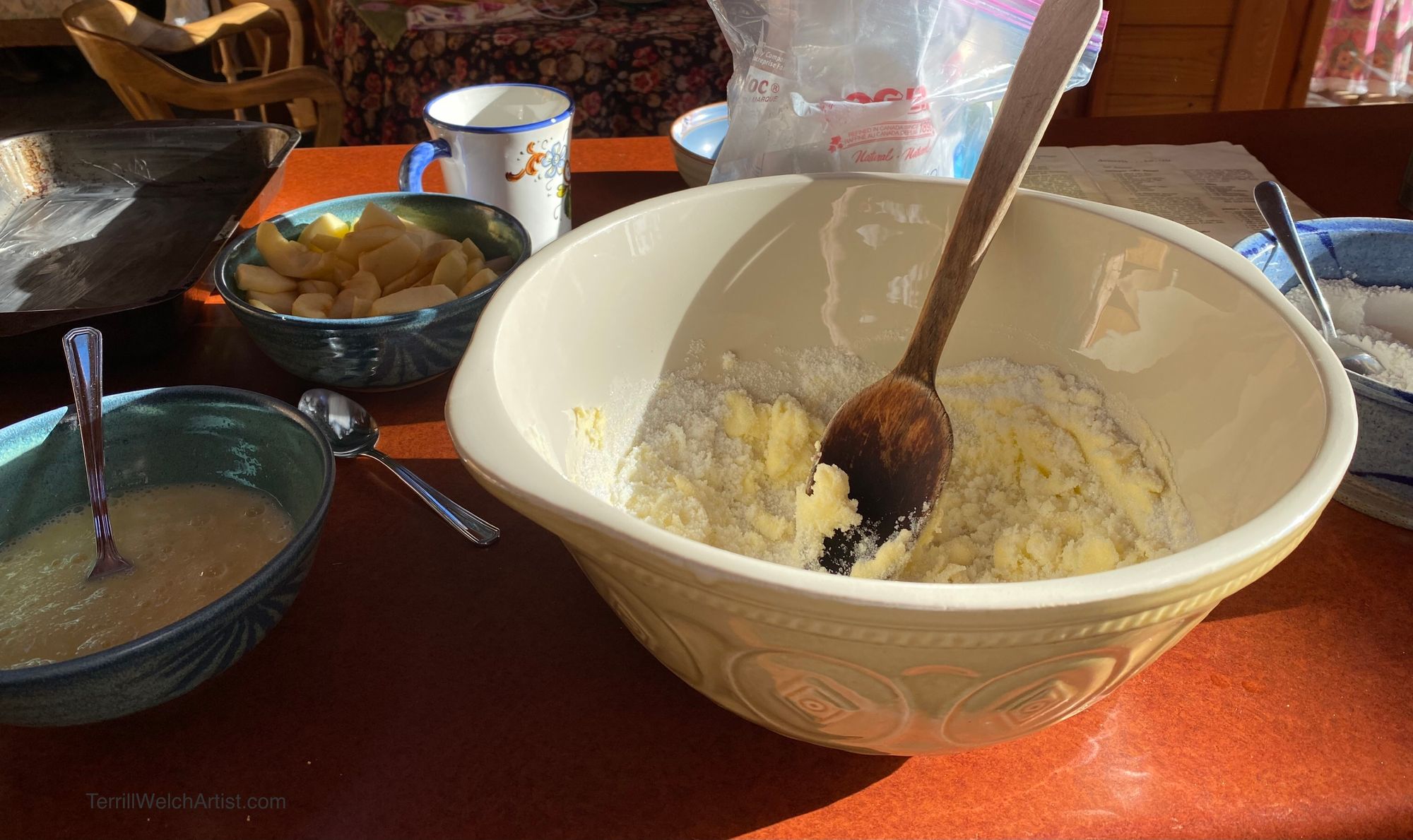 Except now it is daylight and the power is on but I am not able to paint. What to do with all that rattled, sleep-deprived energy that reminds me of caring for a newborn? Baking! I still have three standing brain cells that are alert enough to follow a recipe. I can bake. I think.