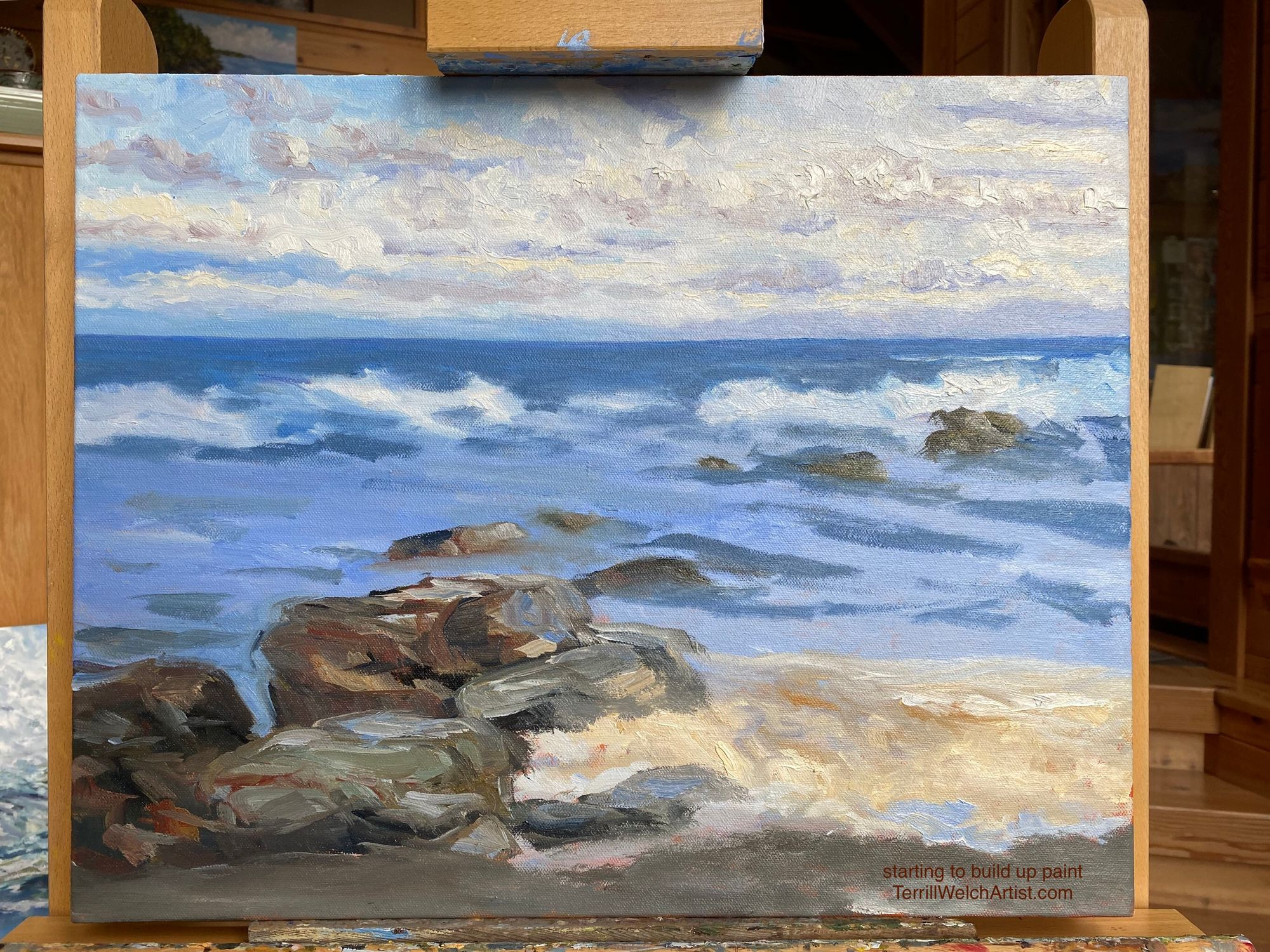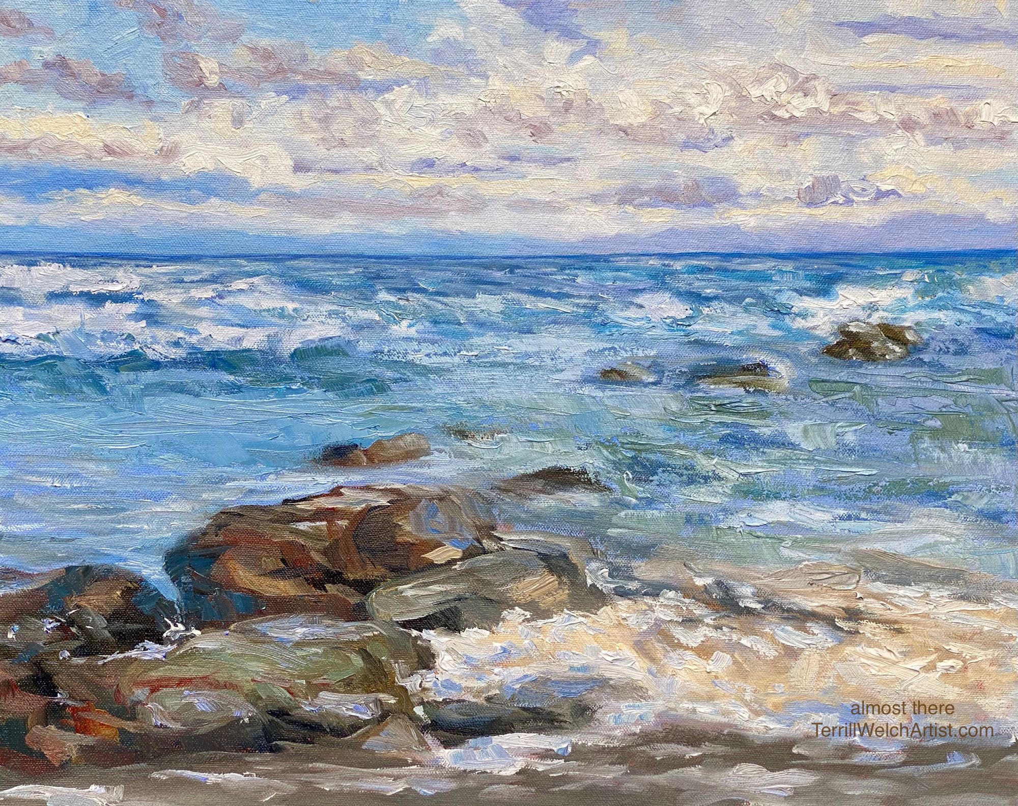 “I just love it, Terrill! And it’s been wonderful to see the painting take shape over the past weeks. Looking at it takes me back to a lovely day I spent with friends walking on that trail and all of us just soaking in the beauty of our surroundings.”