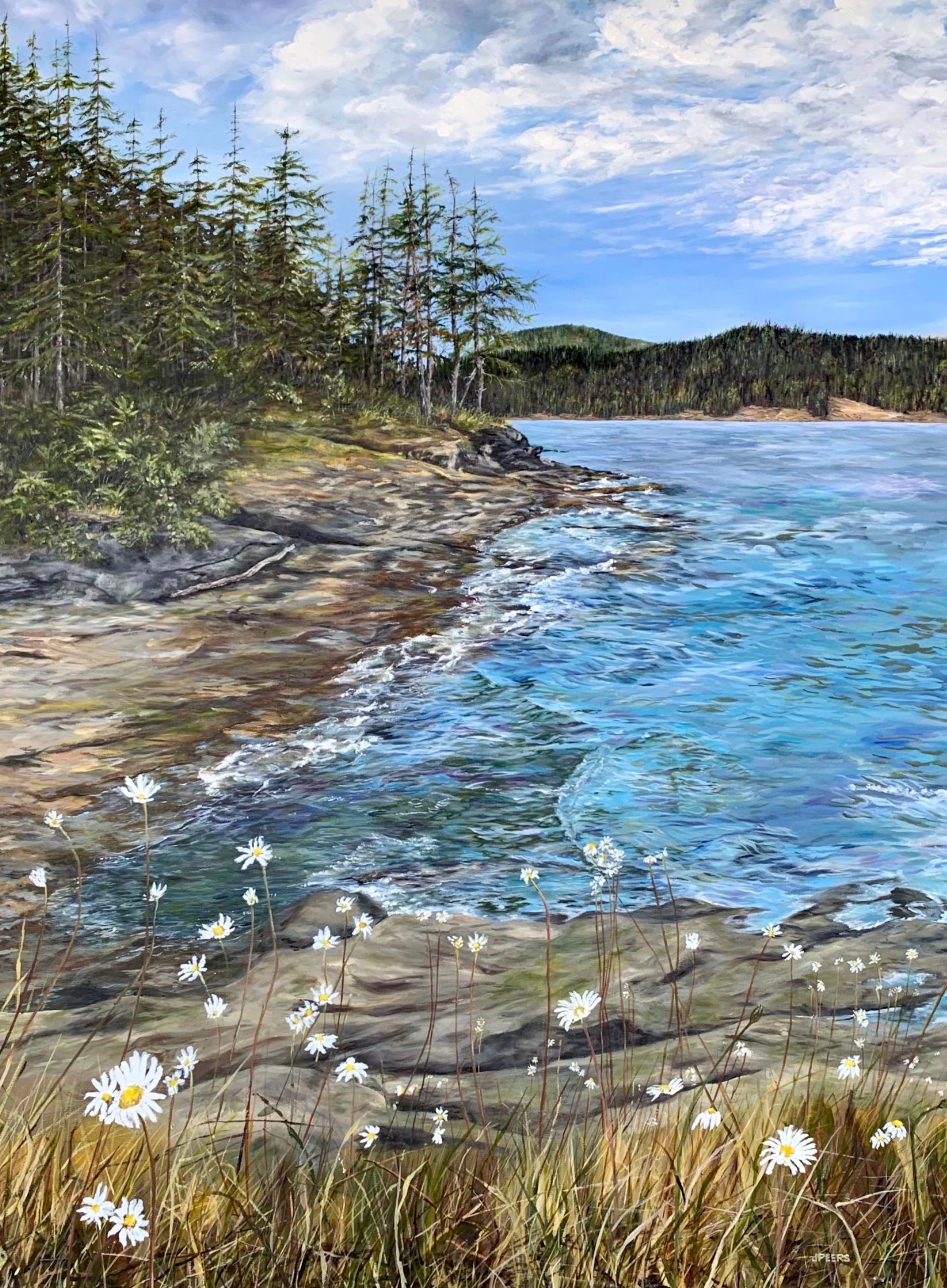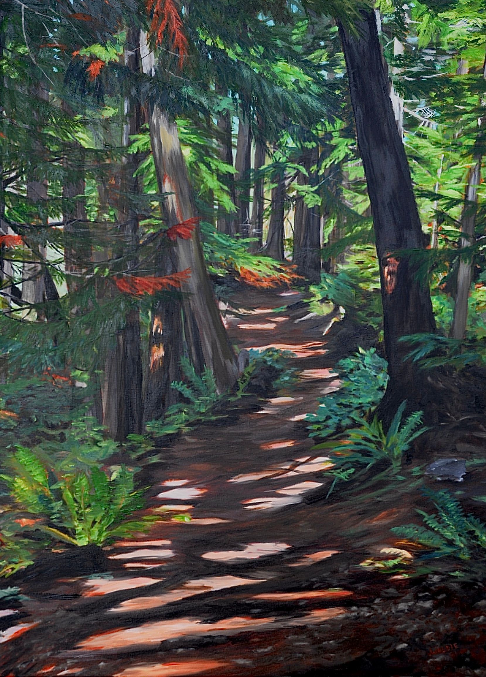With great pleasure, I am honoured to let you know that the commissioned painting “Saint John Point Trail” has been accepted by the art collector and will soon be ready to leave for its new home. This art collector saw the painting in the primary reference image even before it was painted. The work was a joy to paint and a such a sunny subject is a welcomed escape on days of heavy rain.