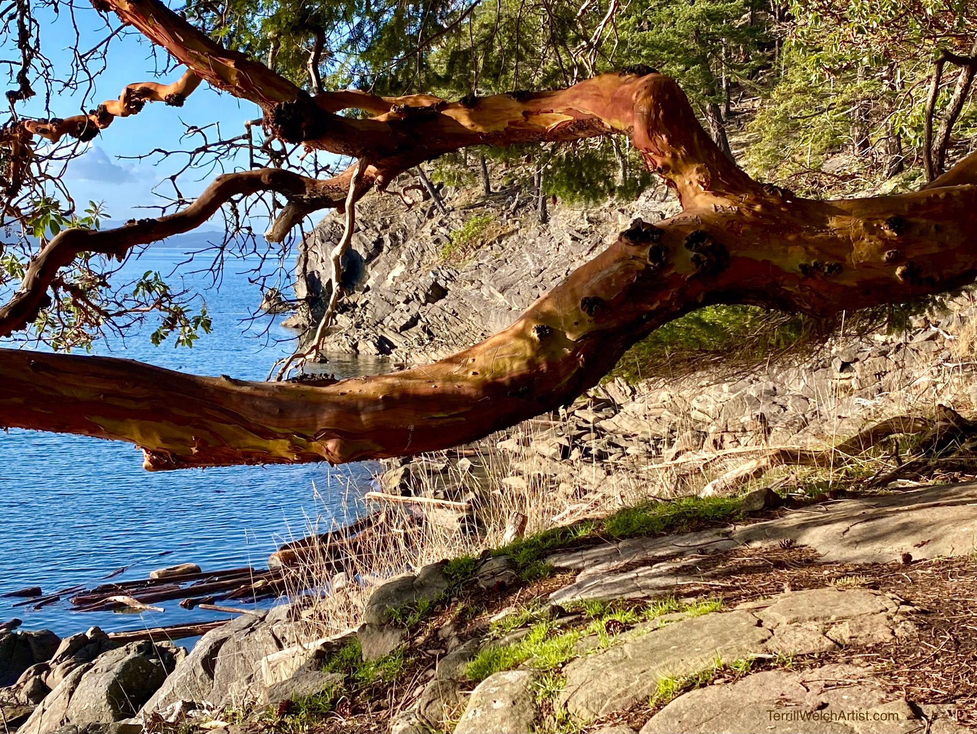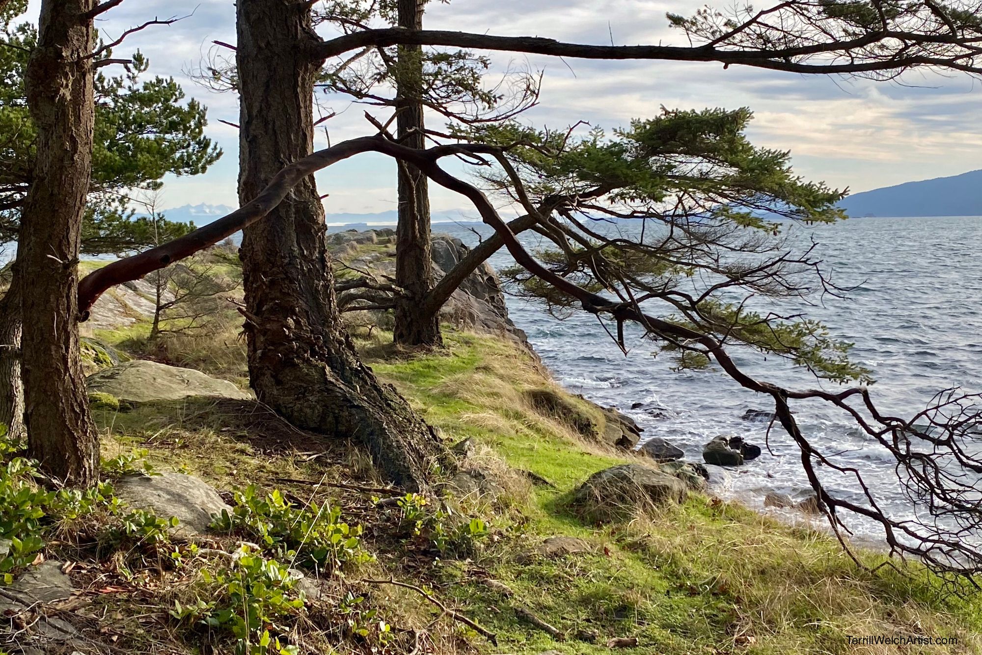 January on the southwest coast of Canada can leave the small Gulf Islands with long nights, high winds and power outages. It is not a matter of if it will happen but rather when and how long the storms will last. However, planning and resilience and just plan old acceptance can harness this time in unique ways. In this issue we will introduce you to Bill Hibberd a landscape painter from Duncan B.C. who is showing in a two artist online exclusive exhibition with Terrill Welch opening February 17, 2021. We will take you through what happens creatively for Terrill when daylight comes after a winter storm including the development stages of a new painting. Though the days are getting slightly longer, the quiet contemplation of winter is just starting to signal a stirring prospect of spring. The next Arbutus Room group show will open February 10, 2021 and we have an early look at few canvases that will be debuting at that time. We hope you have time to take your time and enjoy this early viewing with us.