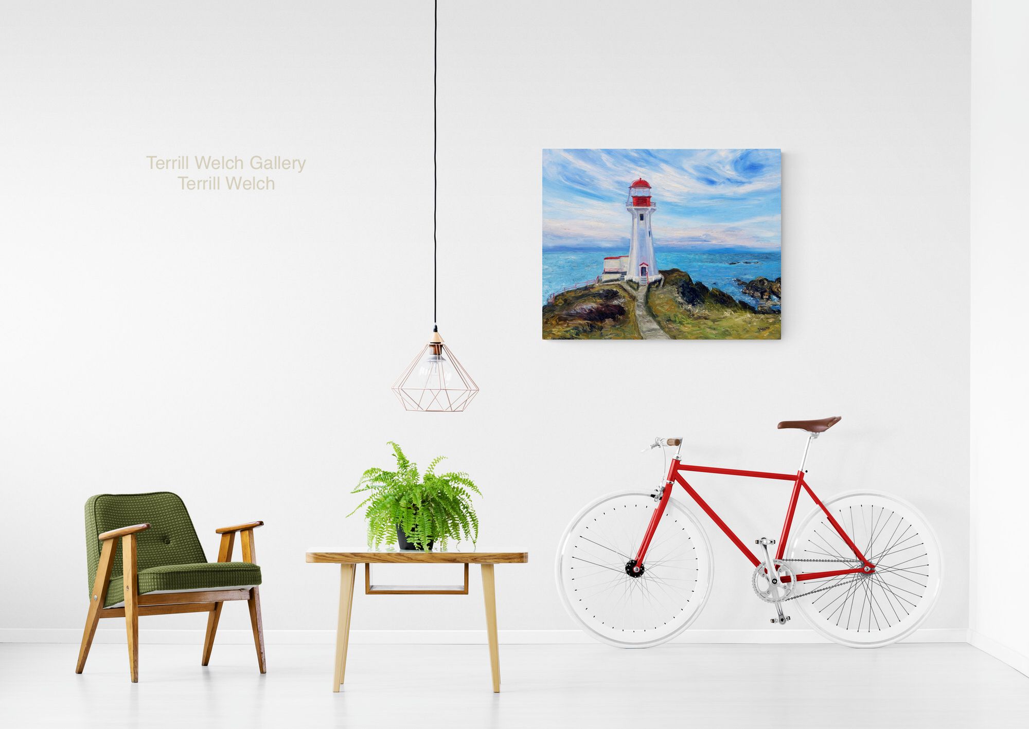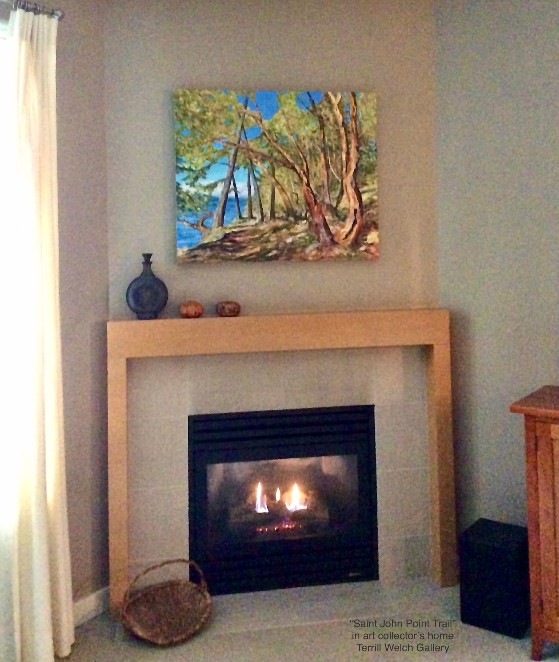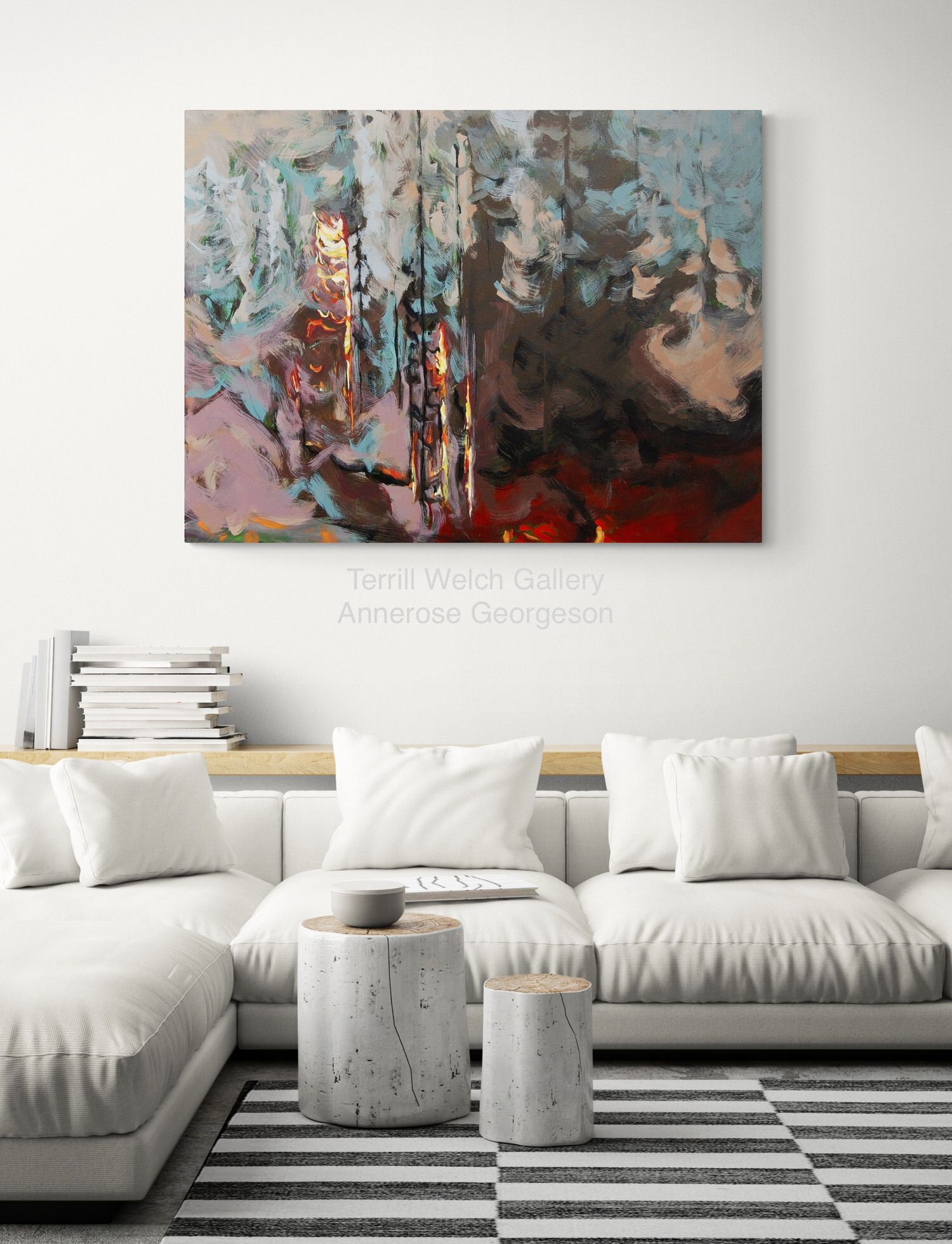 Perhaps another room view? “Wildfire” by Annerose Georgeson is a large 36 by 48 inch transfixing landscape.