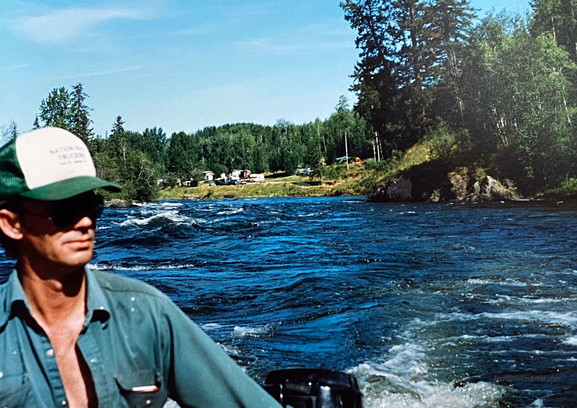 How I got there to take the reference for this painting is as much about the painting as the painting itself. It was a hot weekend in August 1994 and Ed Forfar, my partner at the time, and I loaded up his small river boat with our camping gear and we headed up river from my parent’s farm.