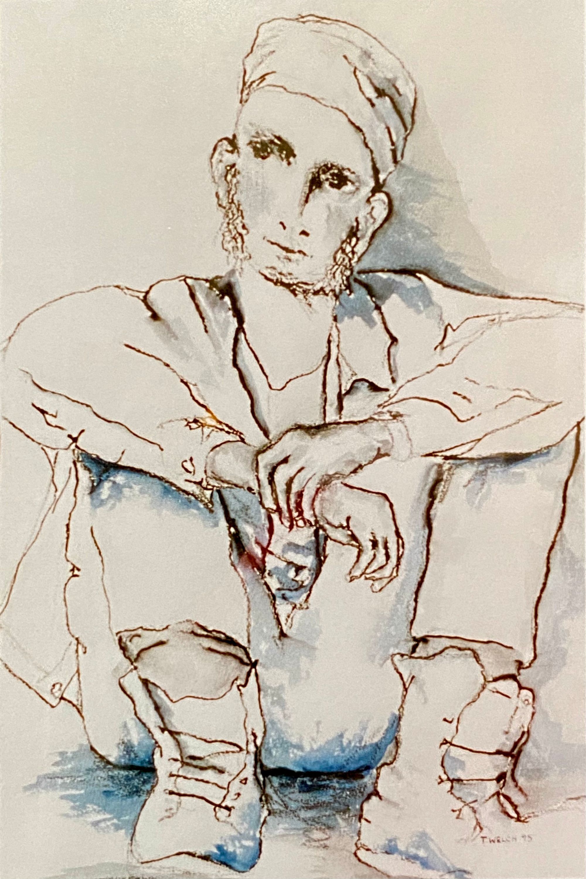 I have thought about this painting a lot in recent years. If the art collector who purchased this and another figurative portrait (that I will also include just because I can) is still around and still has it, I might try and get a better photograph. These images have reflections from the glass and this is interfering with our viewing of the paintings. However, they are better than nothing at all which was where I was before I went up into the loft to find the boxes of old photographs.