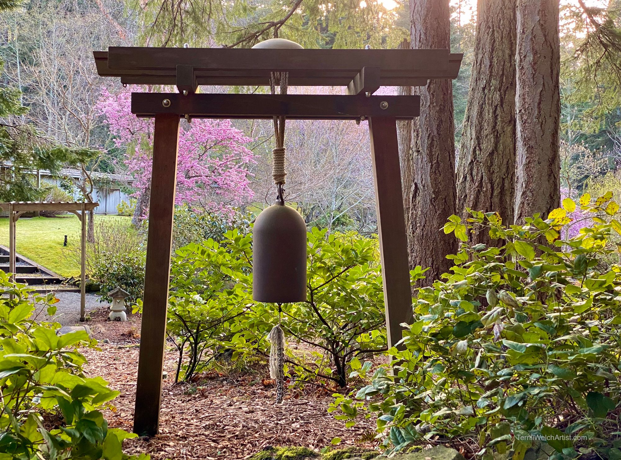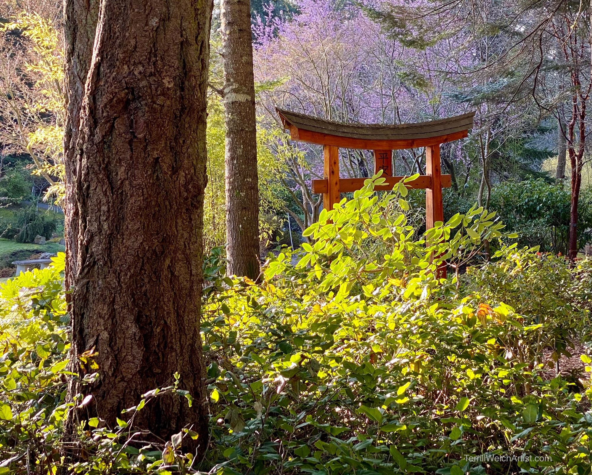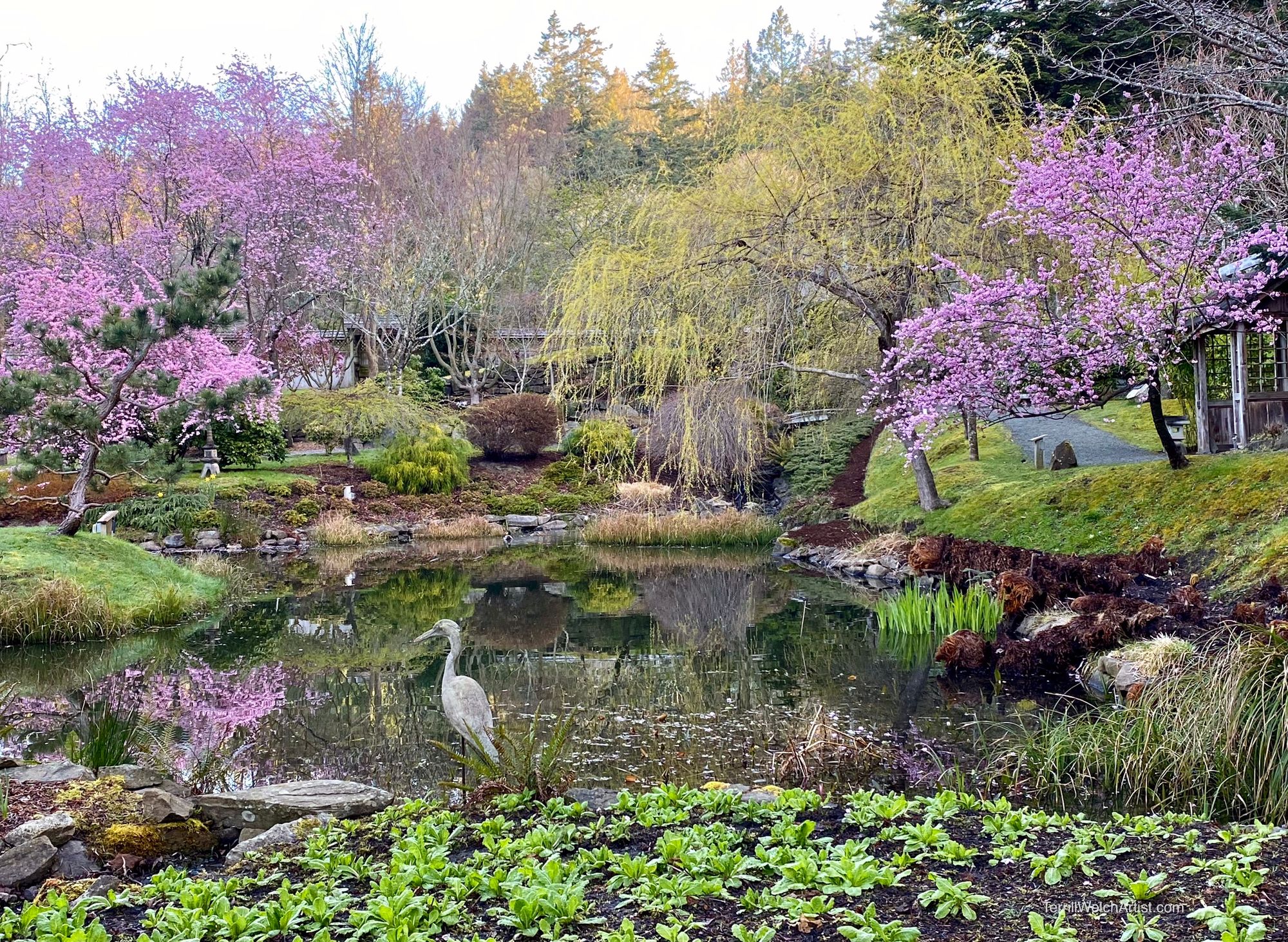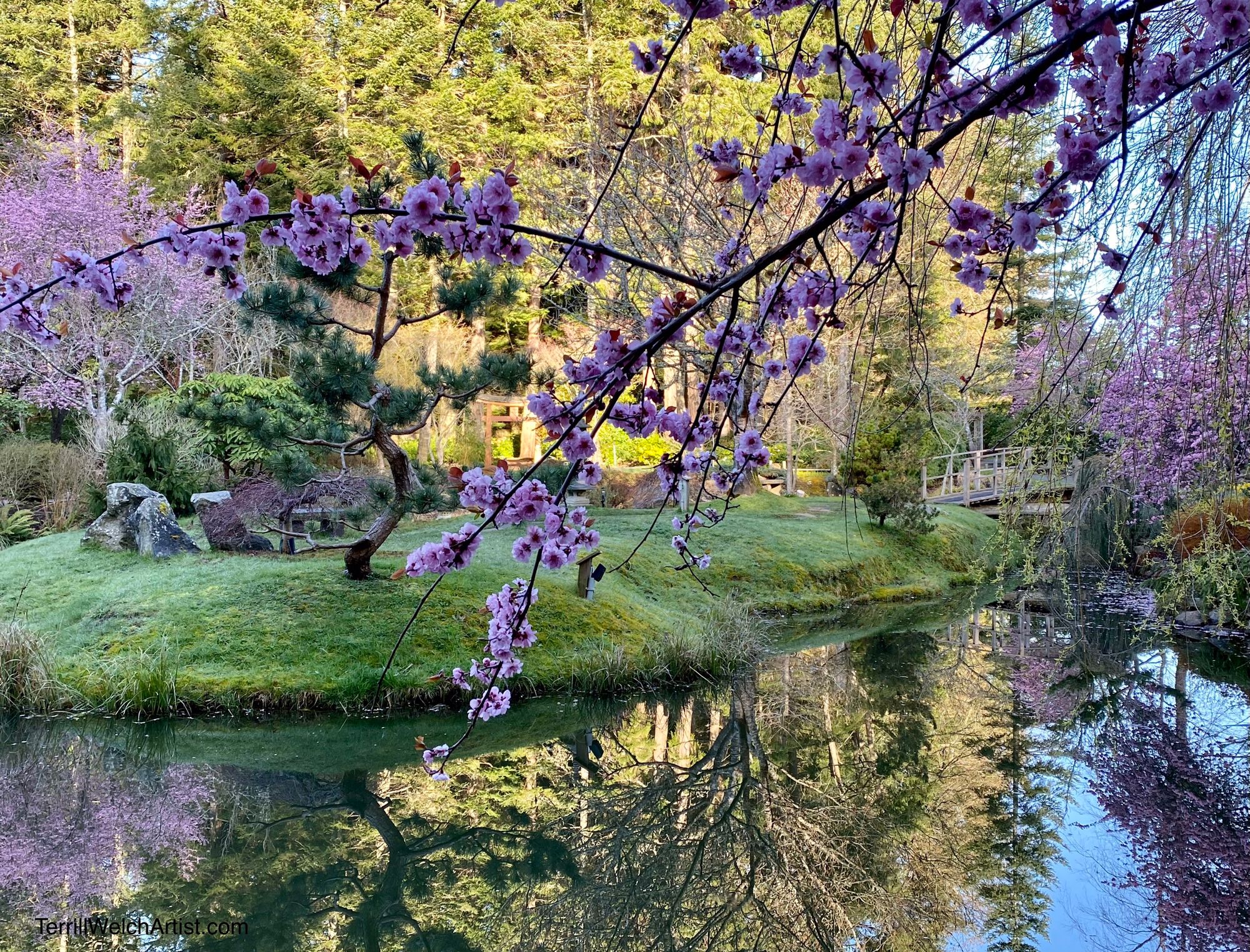 After I had gathered up the plein air gear and plunked it down on the small island in the middle of the Japanese Garden and painted, it was nice to see this quick sketch be whisked away to a new home days later. The painting has arrived safely and is hanging on the wall with artwork by other well known B.C. artists. Special thanks to the art collector who had the perfect place for “Plum Blossom Afternoon”.