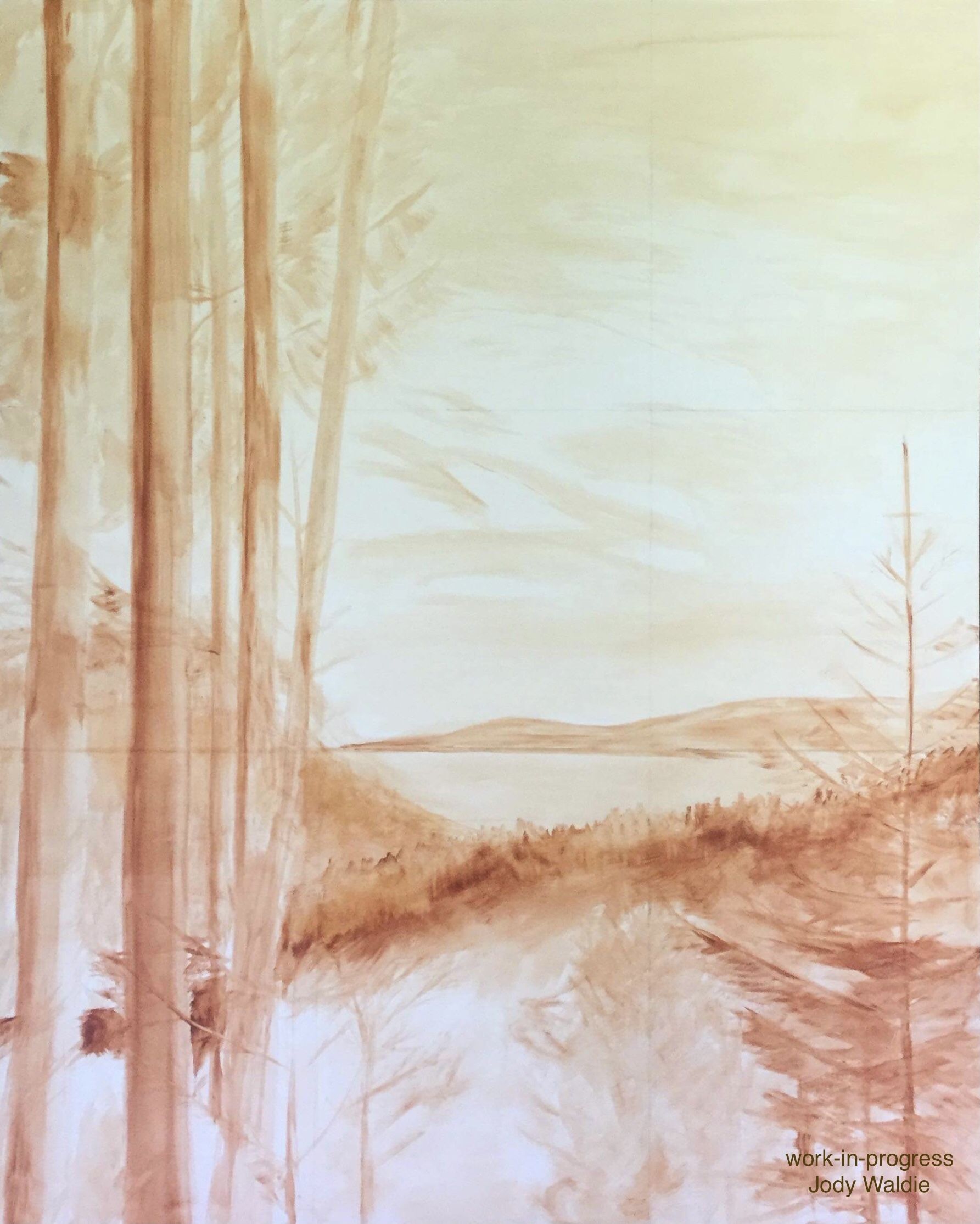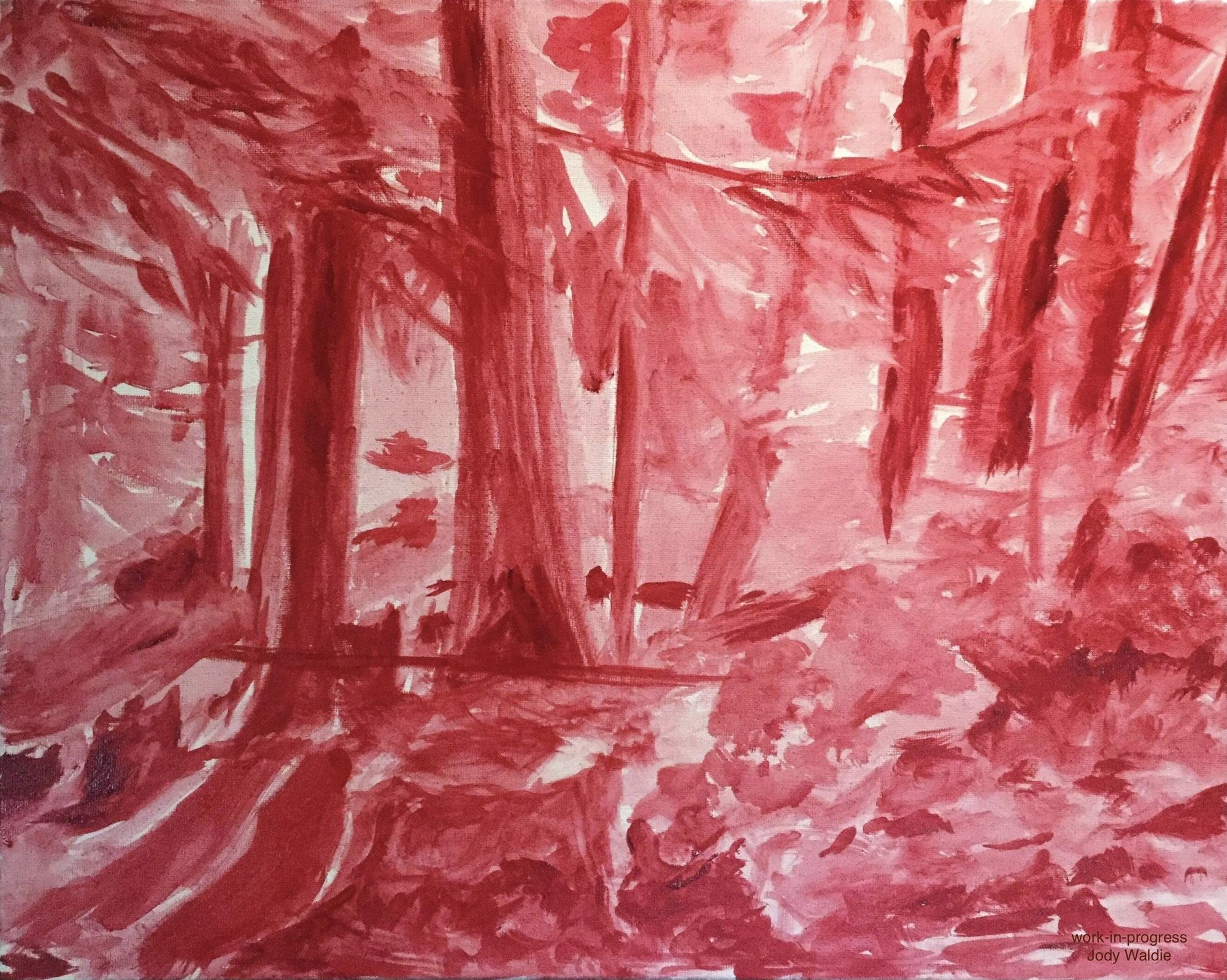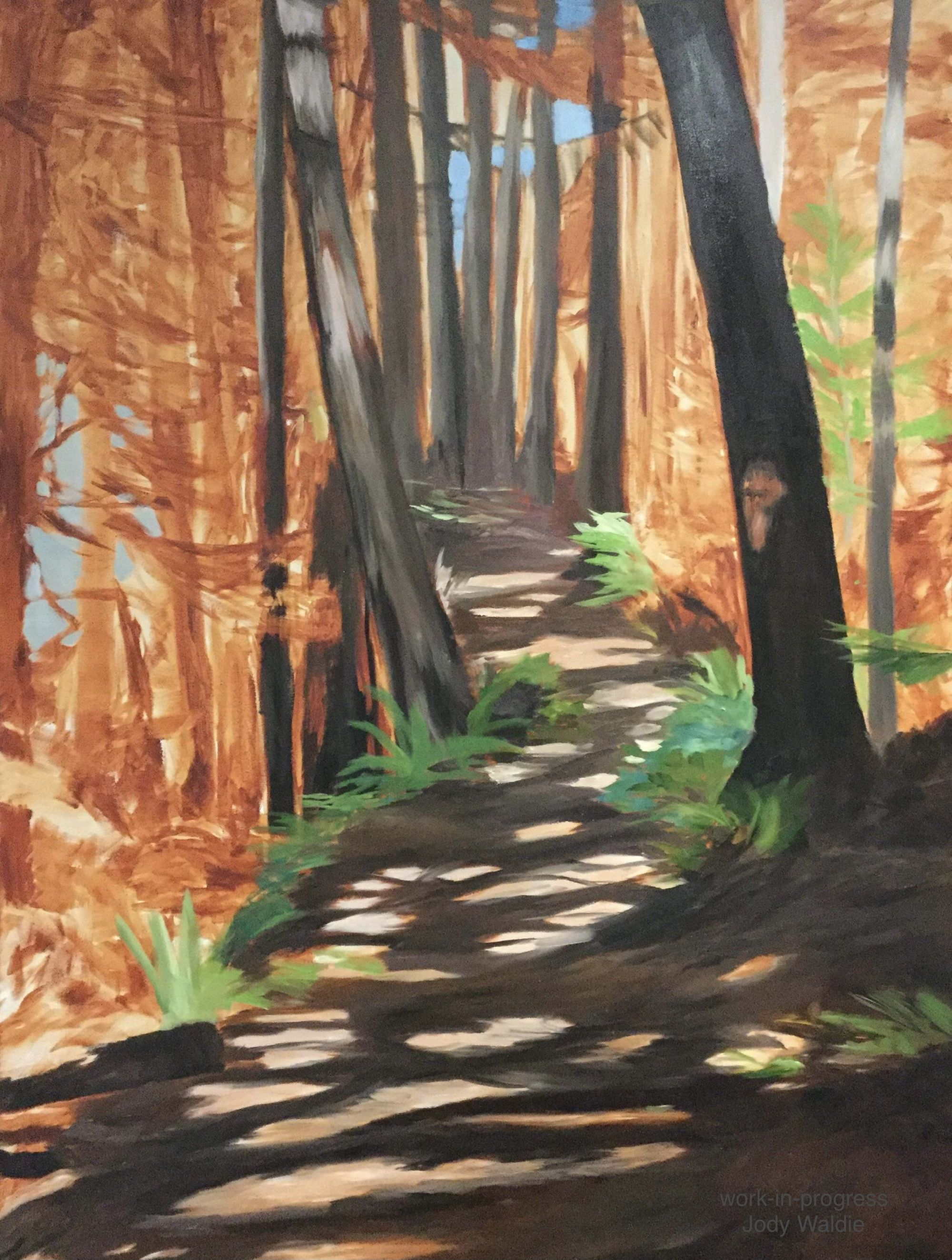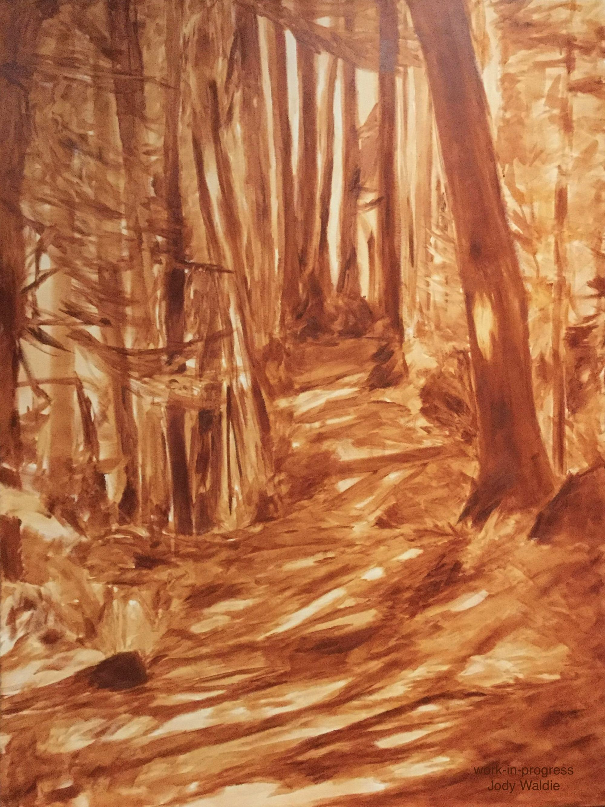Next we have the underpainting for a 48 x 36 inch walk in the woods that was in the previous Arbutus Room show and is still available through the gallery.