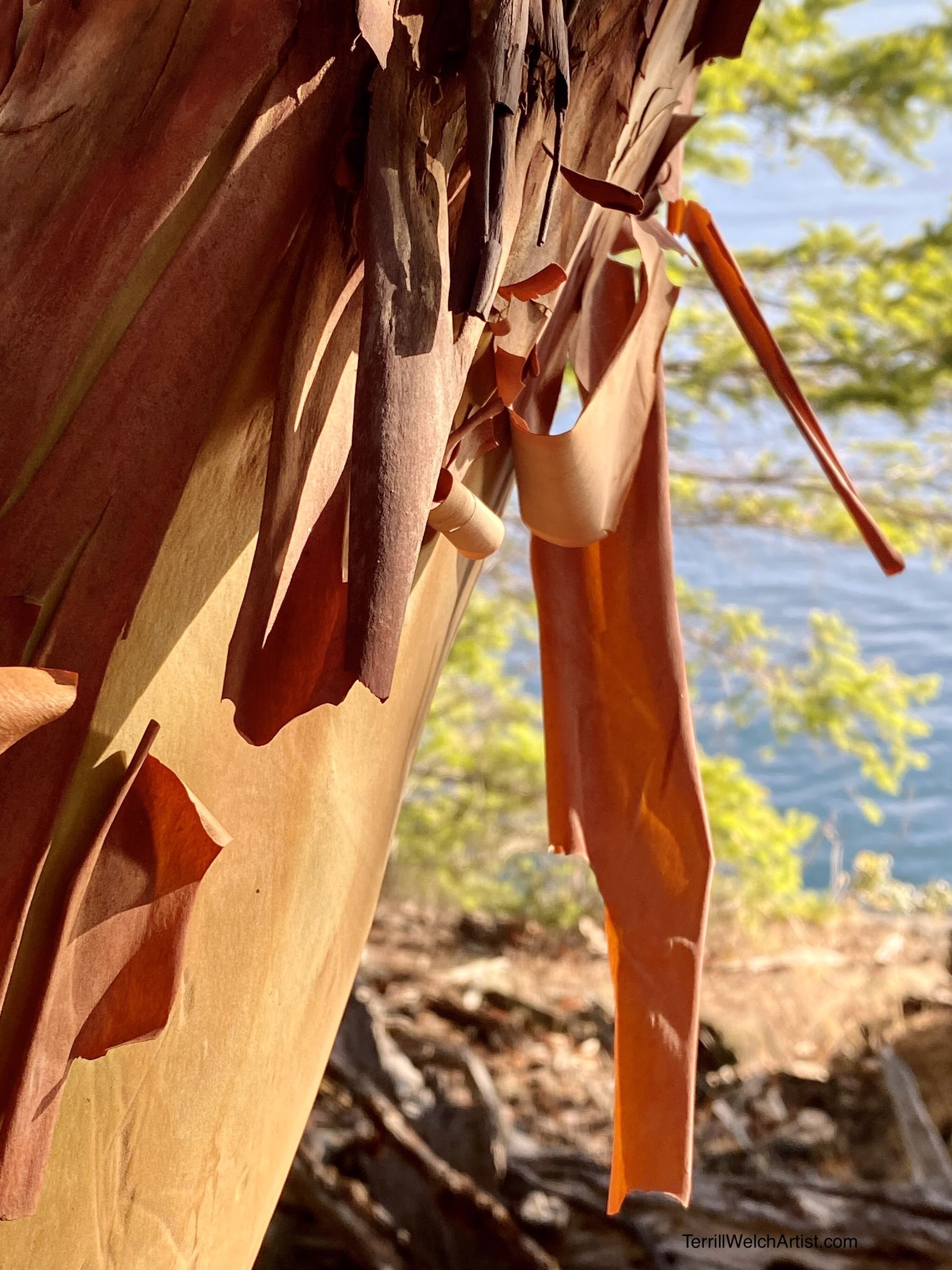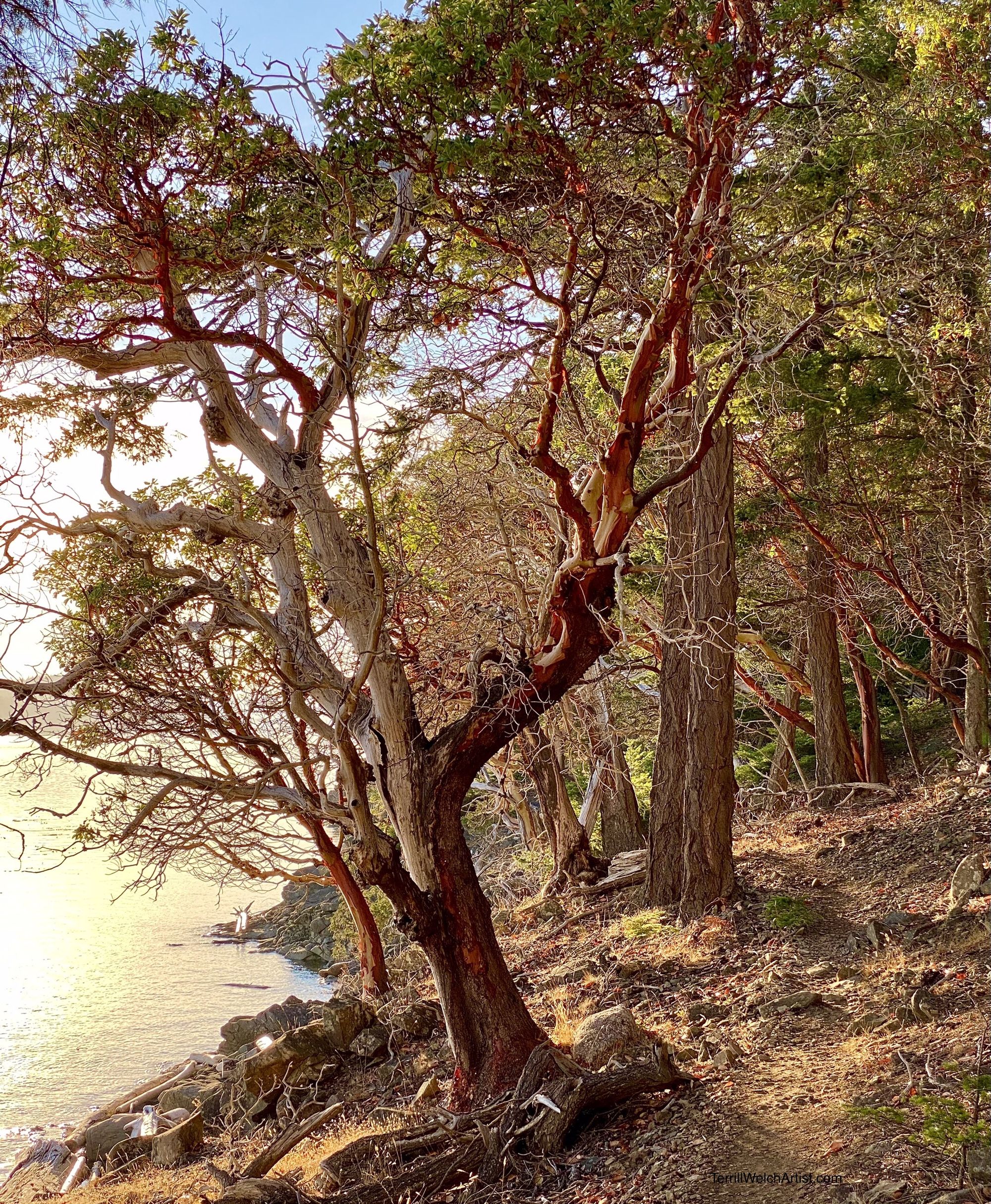 Time to catch the evening’s light through the peeling bark of the Arbutus Trees.