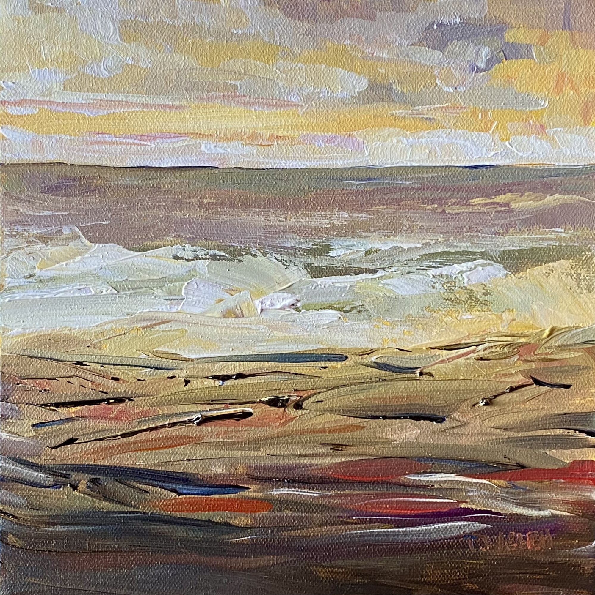 And, not yet released, here we have “Reef Bay November Sunrise” by Terrill Welch 8 x 8 inch plein air acrylic on canvas painting sketch with 1.5 inch edges.