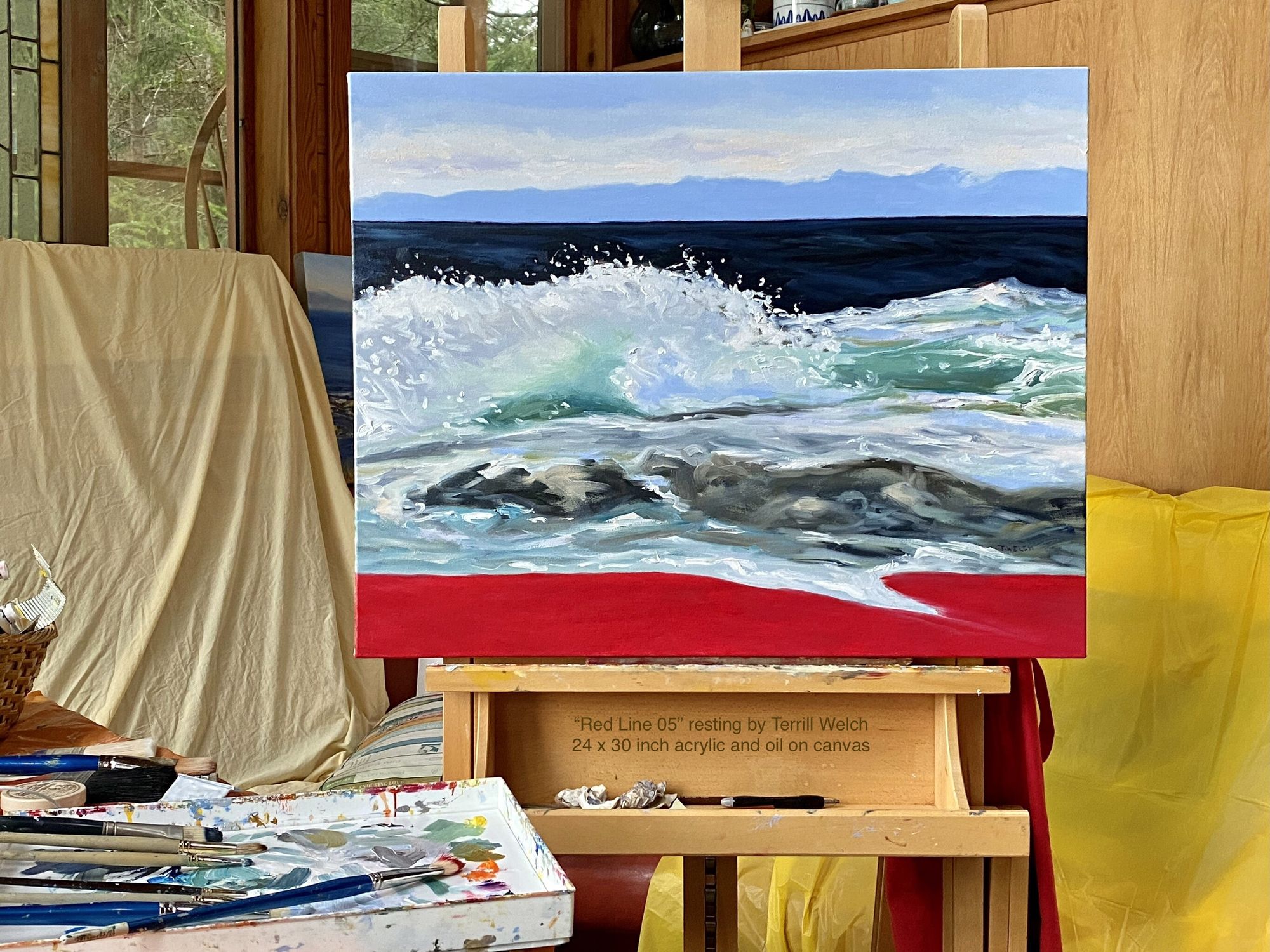 Painting process for “Red Line 05” by Canadian Landscape Artist Terrill Welch