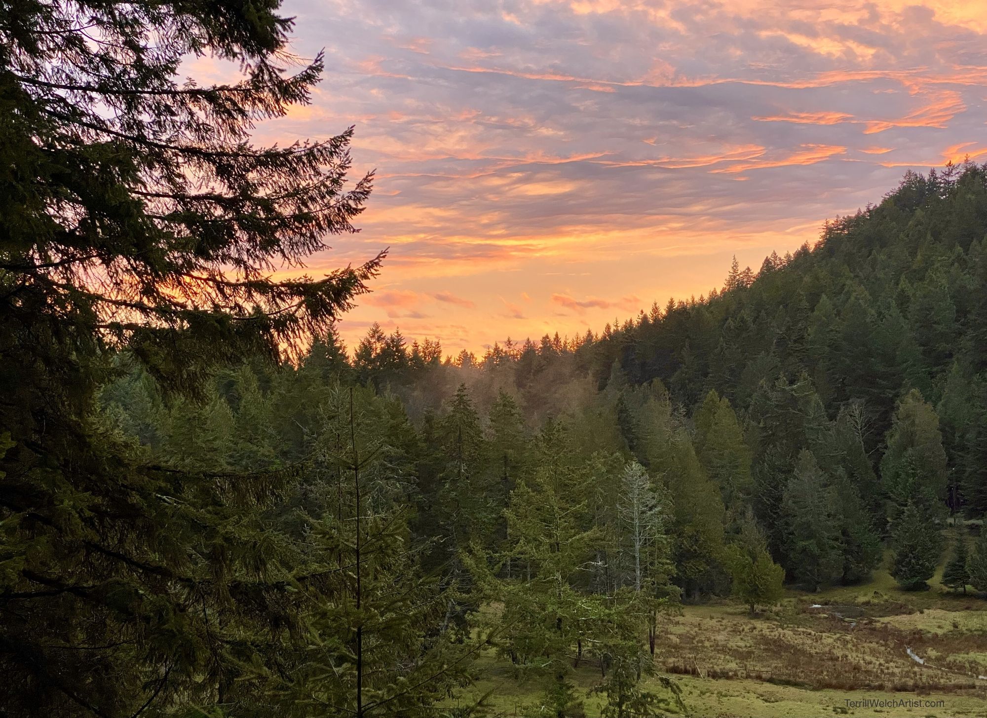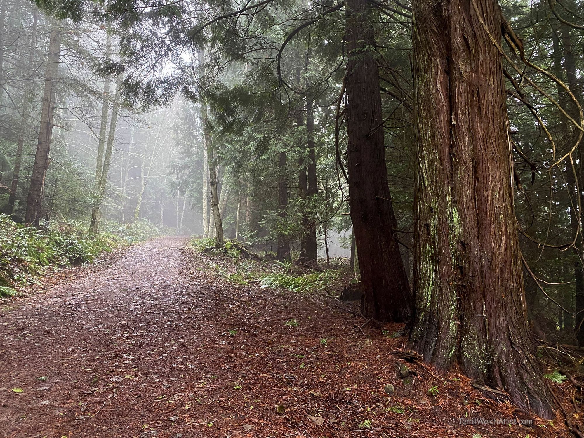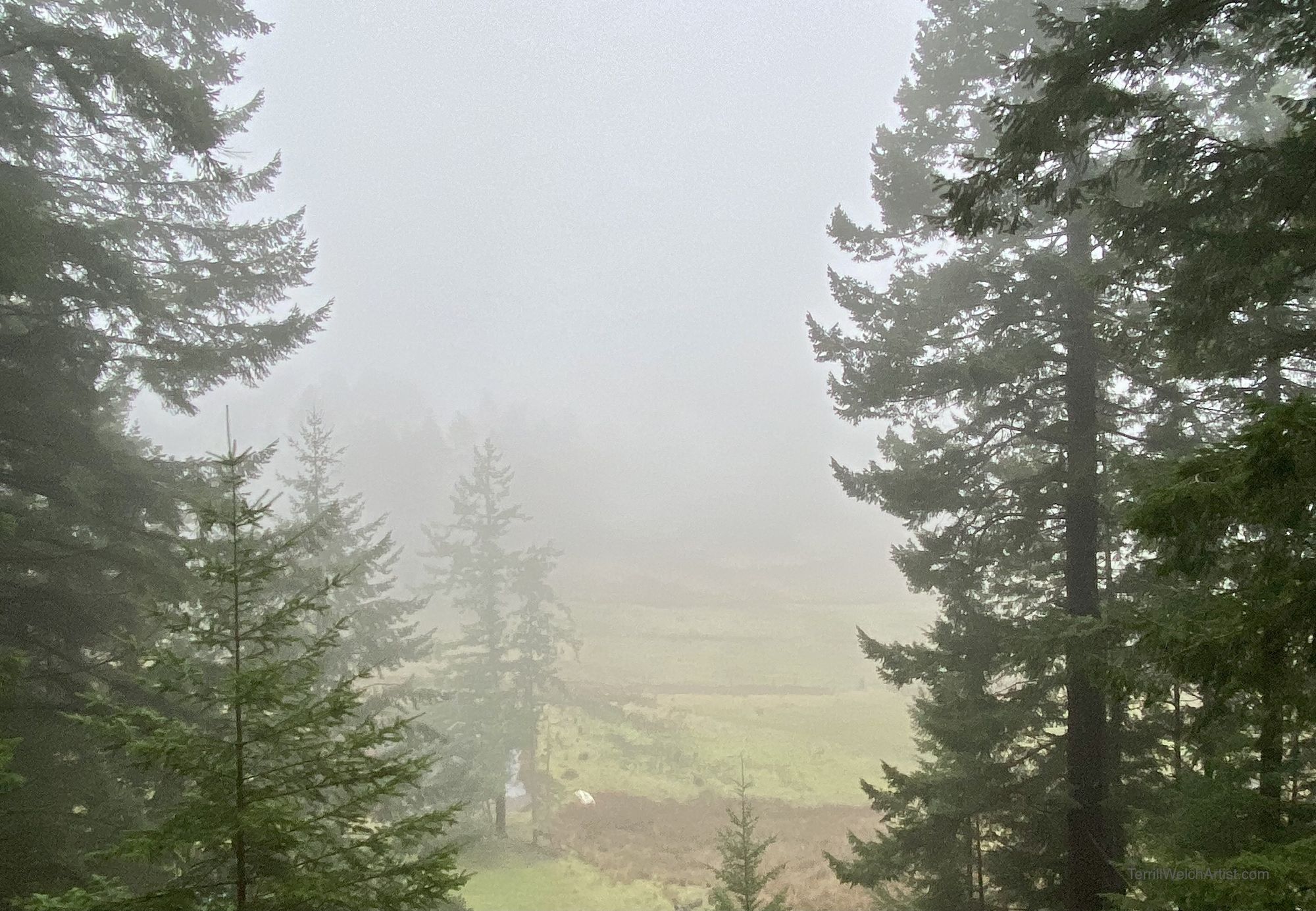 Thick mist moves between the tall fir trees as the sun tries to break through. There is a stillness, mystery and beauty that swells in unchecked emotion.