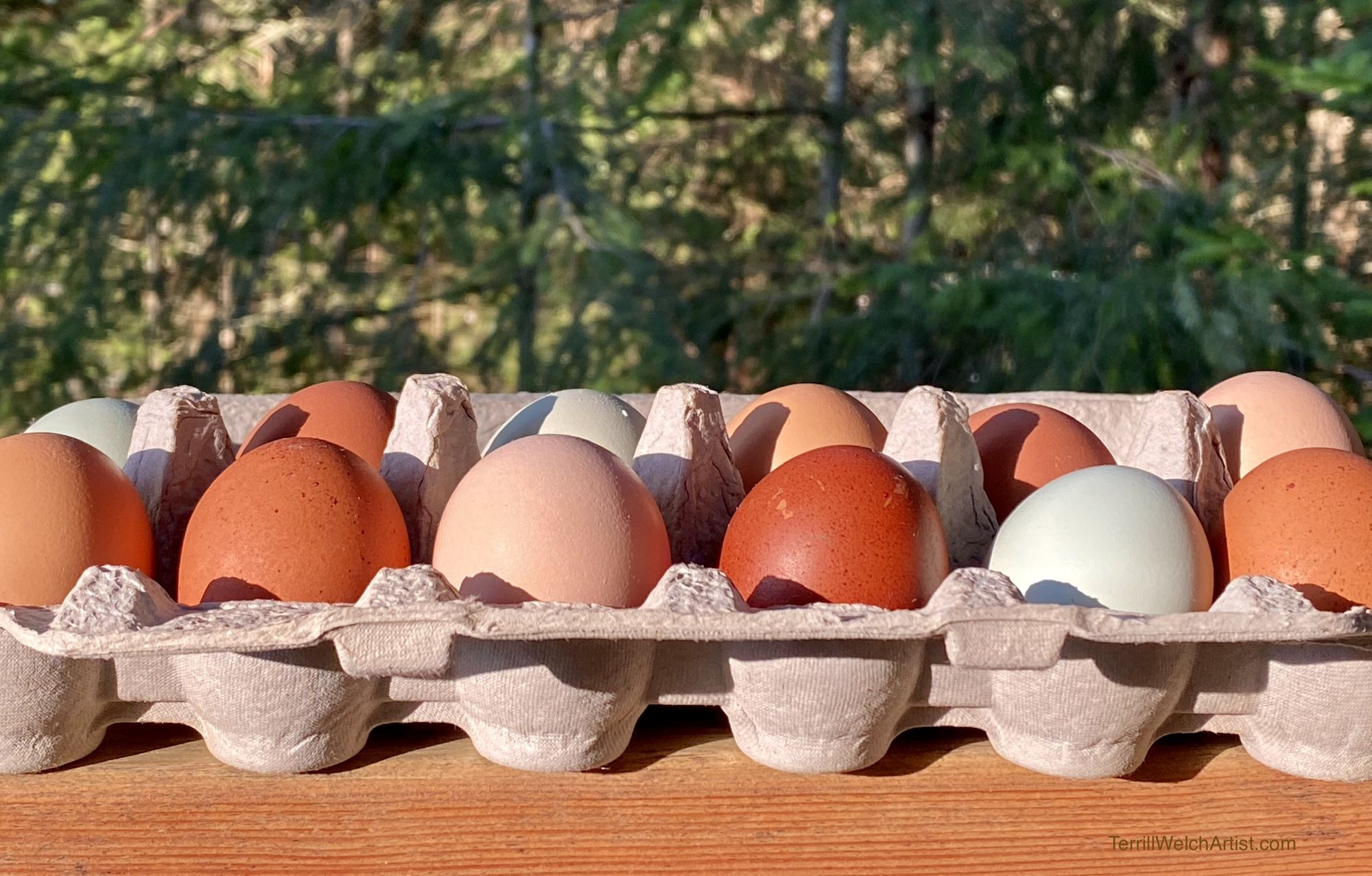 After visiting together along the trail on the way back, with her sweet dogs in tow, I left my friend to return the way she had come and I continued on home. I showed David the eggs before putting them in the fridge.
