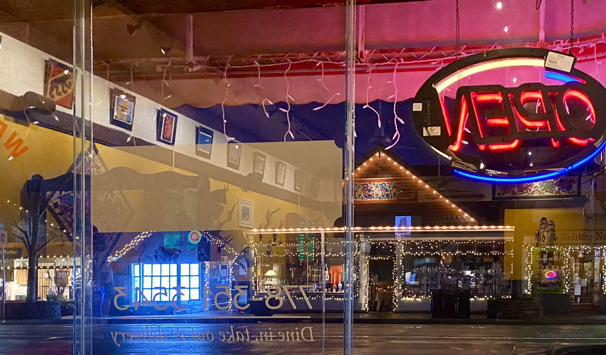 While eating an early supper, we look out at the bright lights on the hauntingly quiet five o’clock streets of Sidney. I muse about the state of things.