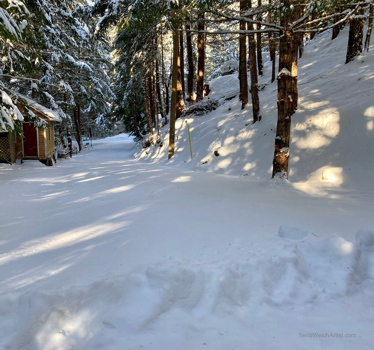 As beautiful as it is, I am doing my level best to find my sense of humour after glancing down Luff Road to find that the plow truck had not plowed the public road that ends with that tree on road edge at the right.