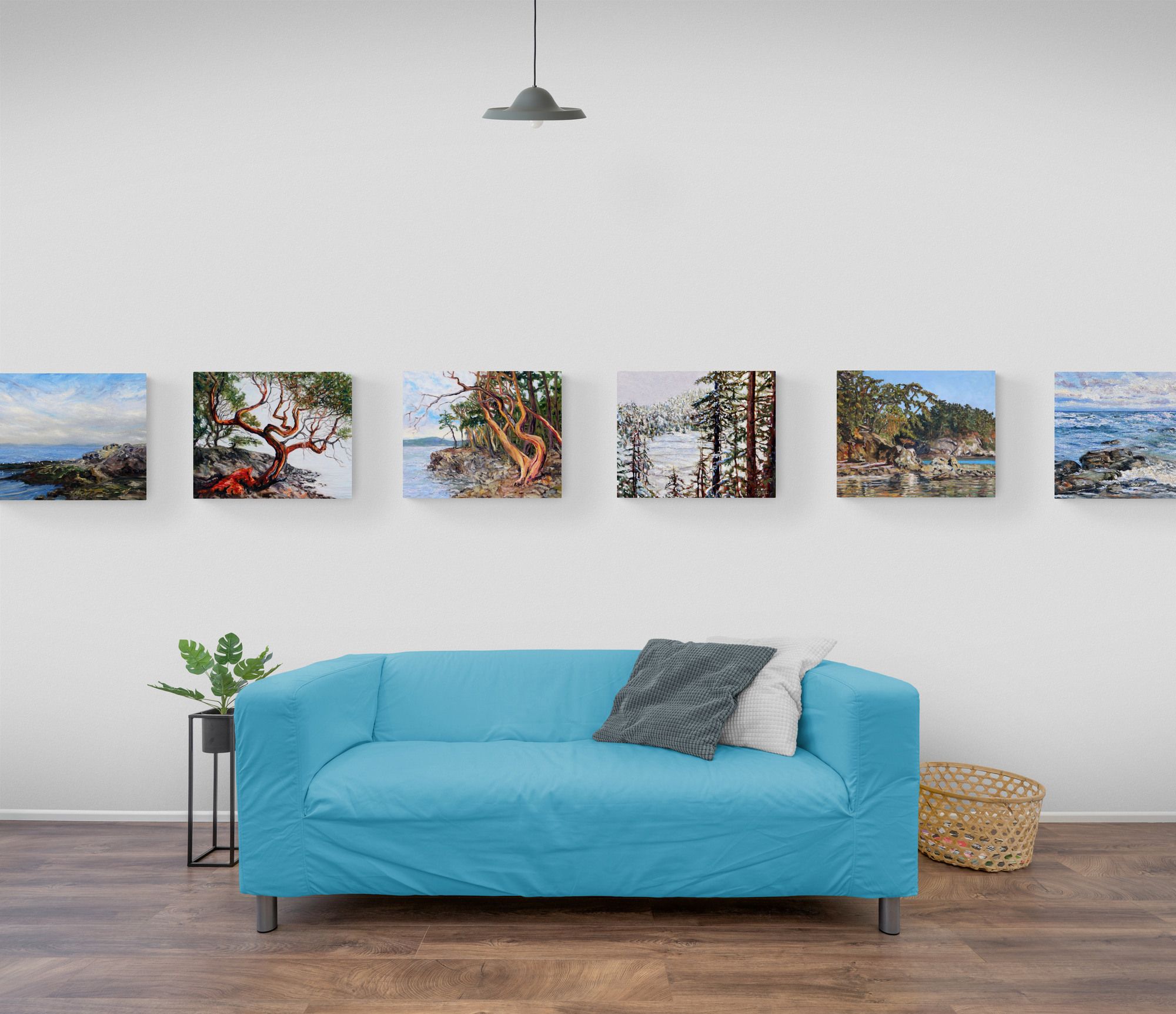 SIX - Appreciate that big is not always better. Instead of thinking about just one big painting for a space, start by discovering what it is you are really seeking. What job will your desired painting have in your home or work space? Sometimes a small landscape painting can offer a visual feeling that far exceeds its size. I have painted 8 x 8 paintings that can hold attention on a whole wall all on their own. I have large paintings that are so gentle that they are more for cozying up with in a smaller space and will never overwhelm a quiet room. Knowing these things may lead to collecting smaller paintings over time that are a better fit for your budget and can be successfully organized in your space in groupings. I have an art collectors that have been collecting my work for years and they now have the largest collection of my small paintings in all of the United States.