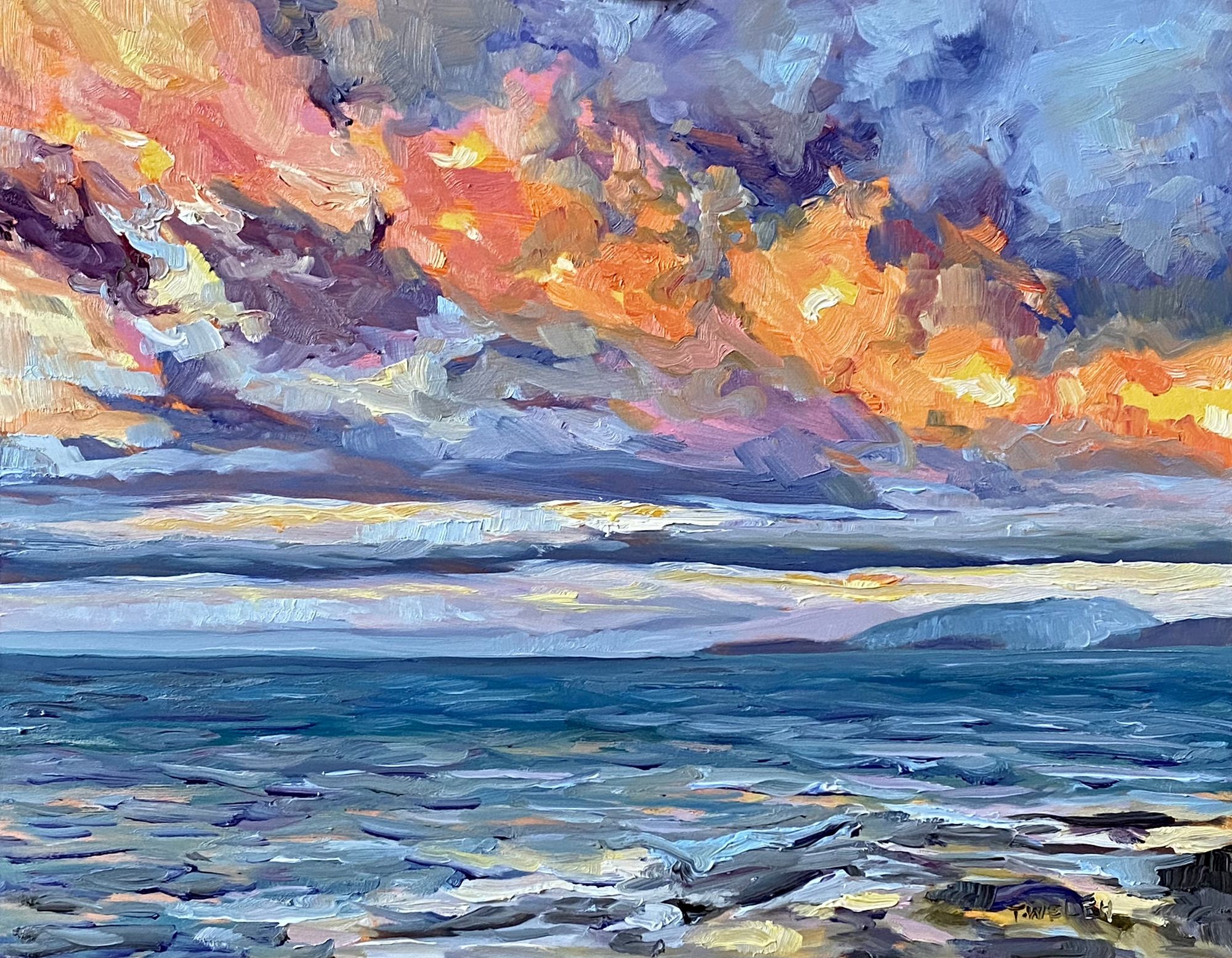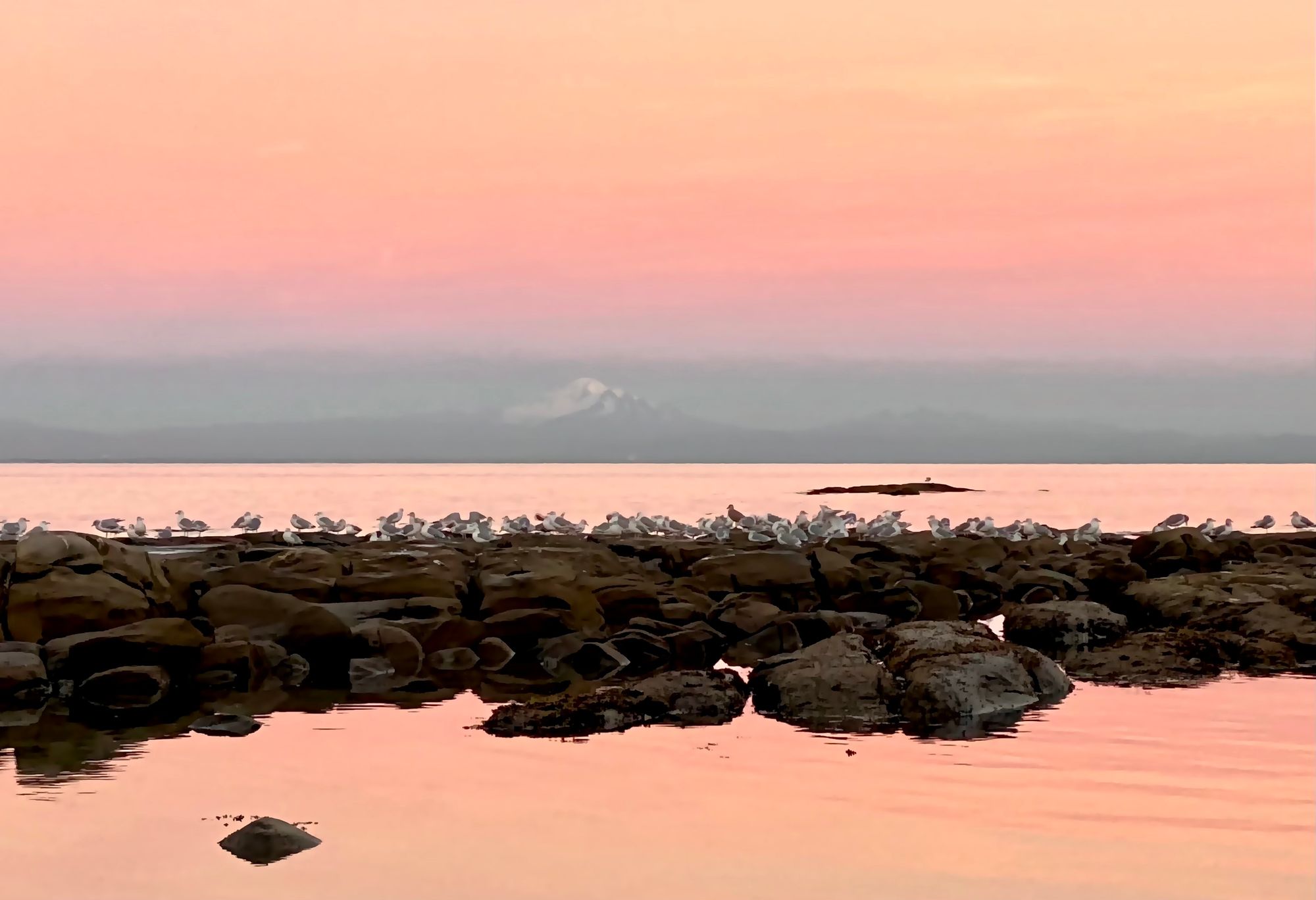 Artist notes: In December one doesn’t need to rise early for sunrise. However, when I got to the shores of the Salish Sea at Reef Bay I thought I was going to be cheated of any colour and that the drama of the morning was going to escape my hungry eyes for another day. Then it happened with a grandness that was greater than my imagination.