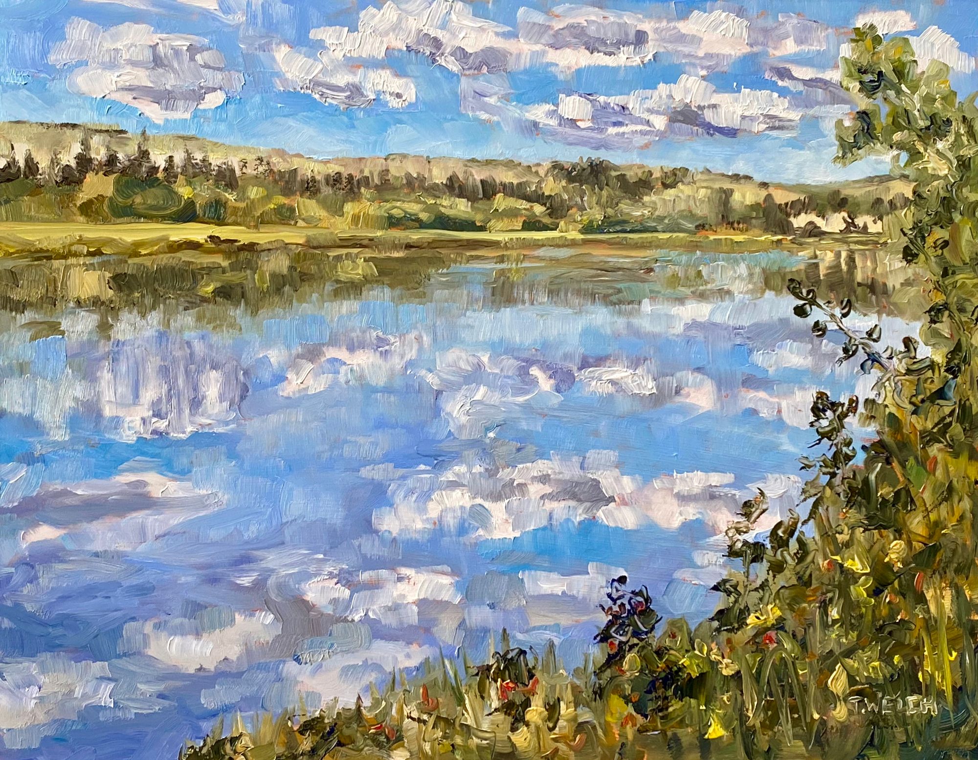 Artist notes: The Stuart River is the Sky’s gift in the early fall when hard frosts are released into the cool sunshine. This is my childhood home as it is most often in my mind’s eye.