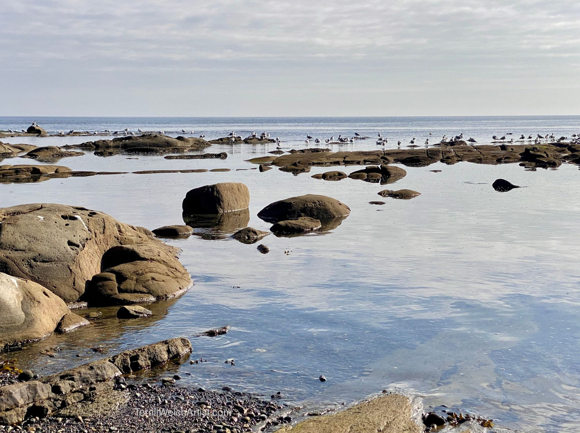 The seagulls are back in abundance and have Settled onto the sandstone reefs for winter.
