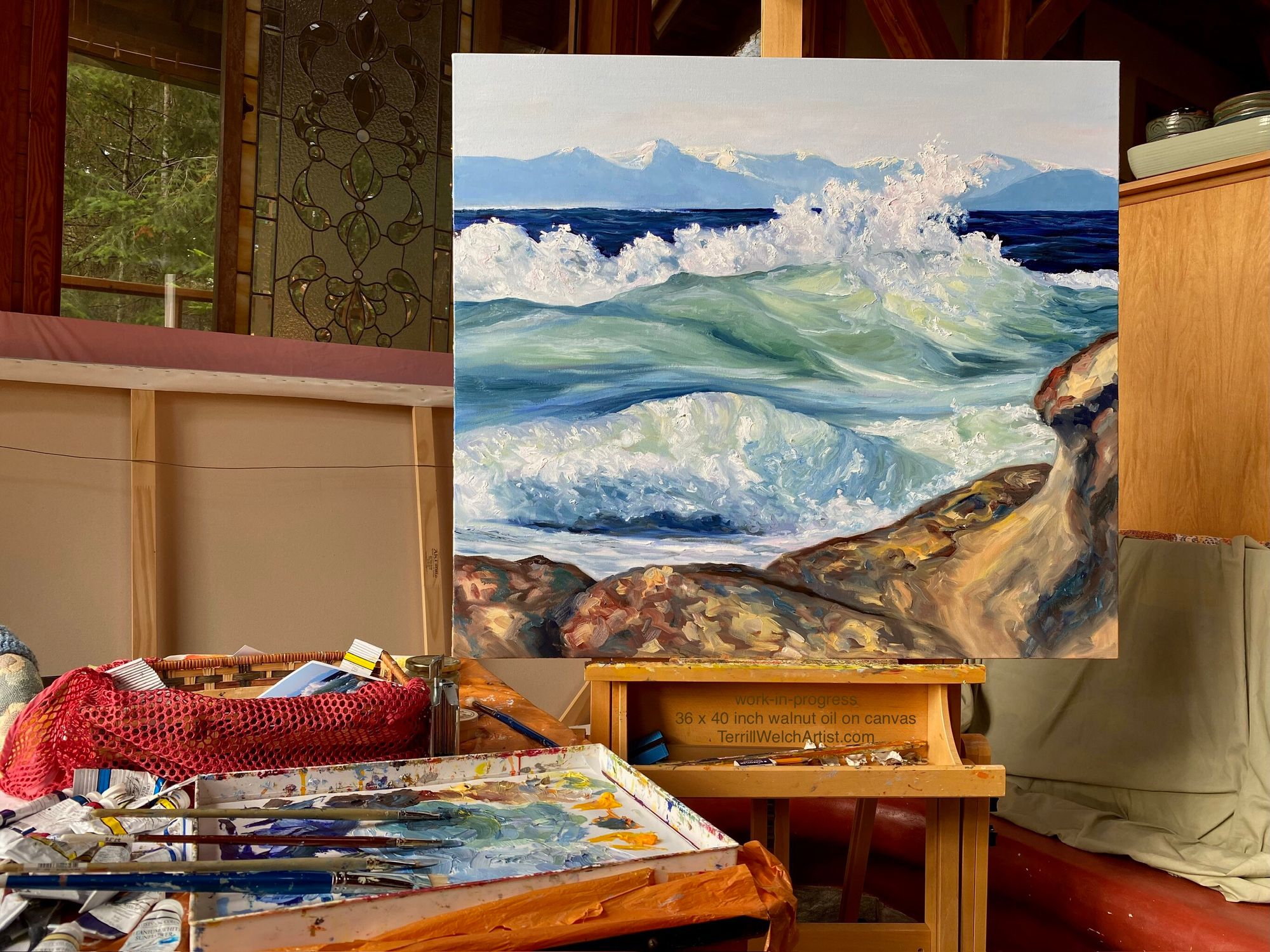 The next few months with their shorter days will offer a natural reprieve into semi hibernation. It is not a quite time however. Soon. With the world is in turmoil in several places, we shall many times have a heavy heart just because of known conditions never mind what we do not yet know. I hope this issue of Terrill Welch by herself will offer some opportunities for resilience. I hope it brings you a chance to enjoy small pleasures and be reassured that all is not lost. Another large 36 x 40 inch painting is already on the easel.