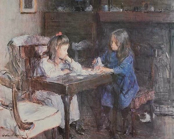 His depiction of scenes were more of rural working class families, both in rural and cityscapes, than those Helen McNicoll.