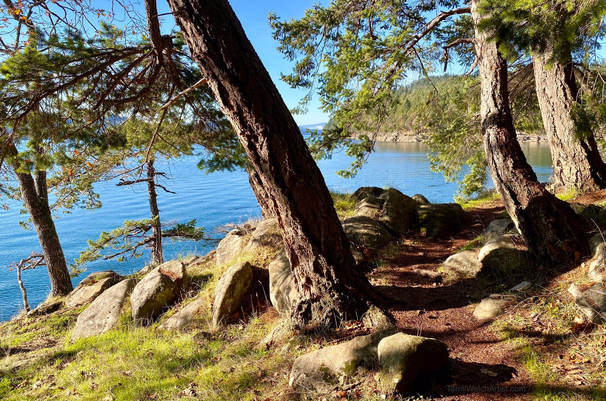 Our west coast winter rains are flaunting atmospheric river designations that lead to gushing streams and overflowing seasonal creeks pushing their way towards a sea of king tides along eroding shores. We need rain. No one who has been here the past few summer droughts with the island water table dropping would argue this! What we need though is a slow steady drizzle for six to eight weeks straight. This way the land soaks up more and sends it deep underground for safekeeping. This is my seasonal holiday wish as I light a candle and turn on the lamps early during some of the longest nights of our year. Let the mist roll through the valley and the occasional break of sun sparkle on the heavy droplets clinging to the needles of sagging branches on the tall firs! But please, let it rain.