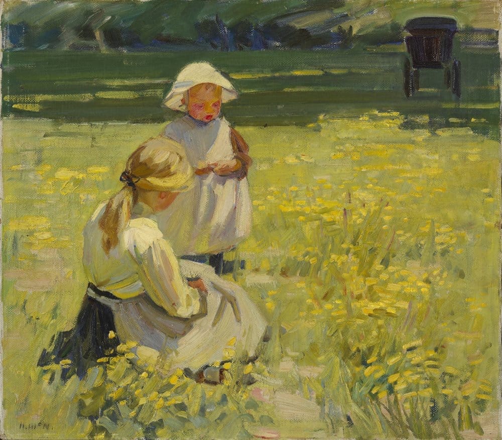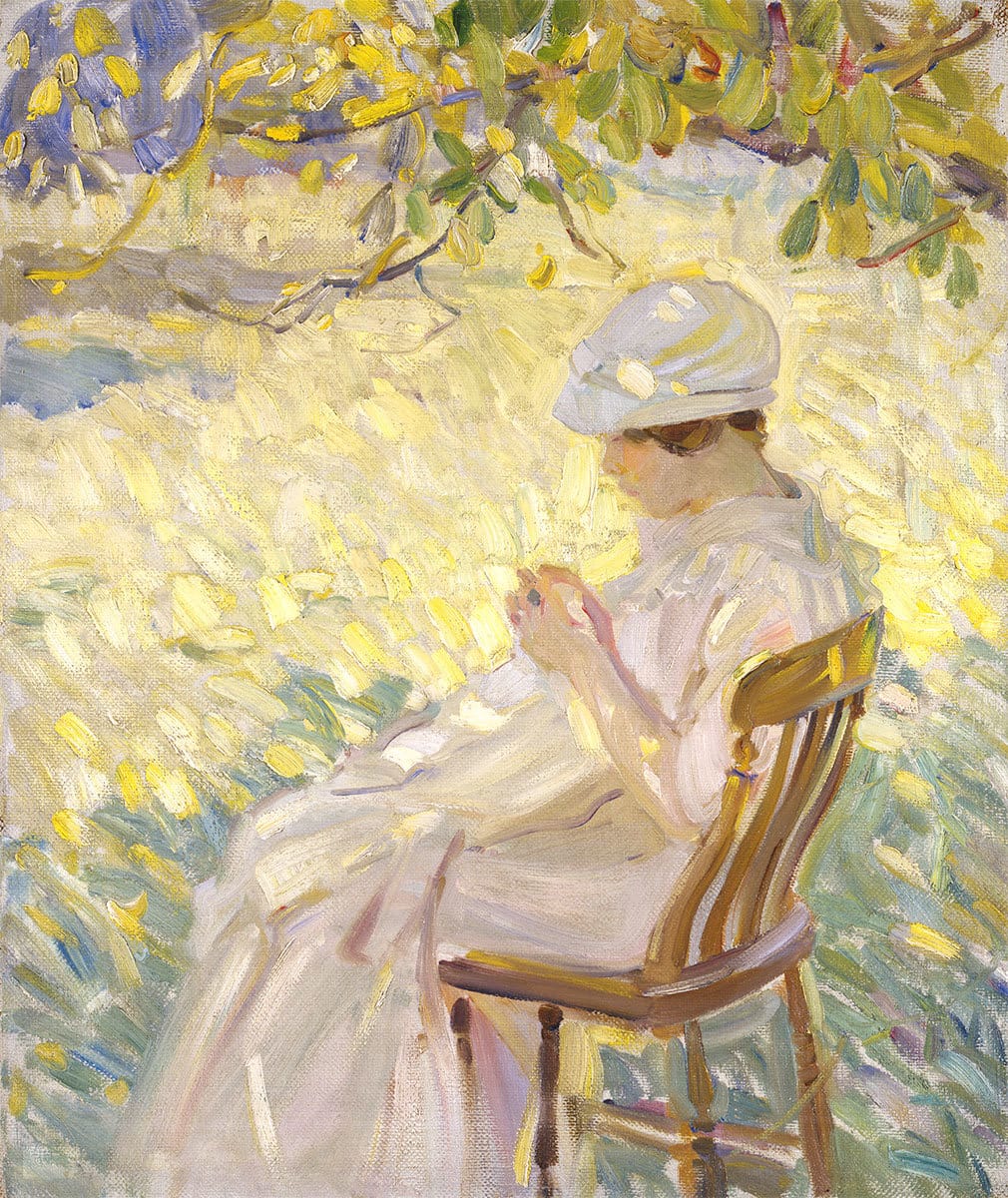 I researched Helen Galloway McNicoll. She was born in Toronto to a wealthy family in 1870 and who died in England in 1915 at the age of 35 years old. Her story is fascinating and worth researching. When she was young her family moved to Montreal and this was where she did her first art training before going to the Slade School of Fine Art at the University College of London in England. This was partly because it was easier in England for women to receive equal quality art training to their male counterparts than in France. From then on McNicoll trained and worked as an artist in both England and France and shipped her paintings back and forth to be shown in Canada. McNicoll had become profoundly deaf from Scarlet Fever when she was young and benefited from traveling and painting with her life partner and fellow painter Dorothea Sharp. At the time, it wasn’t respectable for women from wealthy families to be out in public alone (I am not sure this ever stopped Emily Carr though who had also been in England taking art training four years earlier). This being the cultural expectation, the two women artists together had greater freedom of movement to work than they would have had alone. McNicoll was well known and respected during her career. Then her work seemed to fall out of view after her death and has only recently been profiled again. She is known as the painter of sunshine. Here are two of my favourites of her paintings though there are several others worth browsing as well.